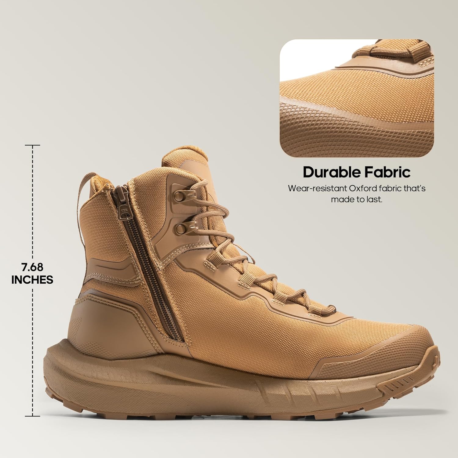 NORTIV 8 Men’s Tactical Hiking Boot Lightweight Cushion Sole Boots for Work All Day Side Zipper Motorcycle Combat Military Boot Arch Support 8 Inches Terrascope
