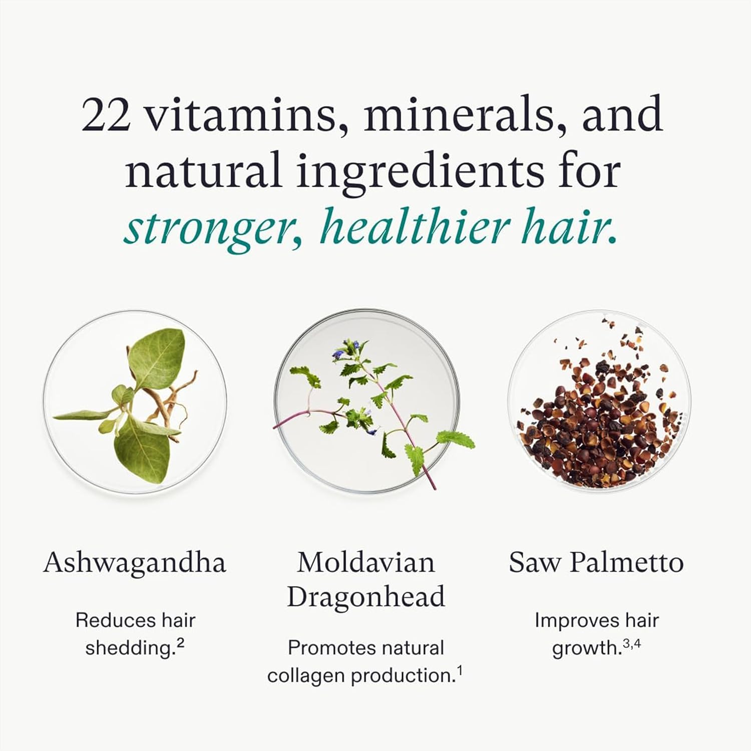 RESULTS IN 3-6 MONTHS: Take 4 capsules once daily for visible results. In a clinical study, 100% of women felt improved hair strength after 3 months and 100% saw more scalp coverage after 6 months (19)