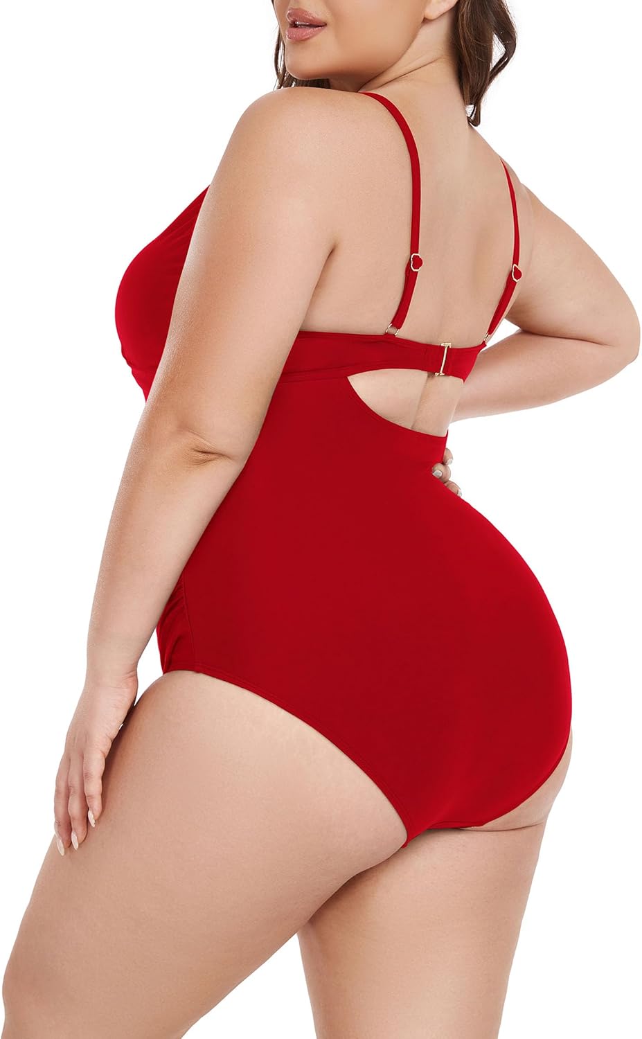 Ocean Blues Women’s Plus Size Tummy Control One Piece Bathing Suit Punging Neckline One Piece Swimsuit Ruched Swimwear