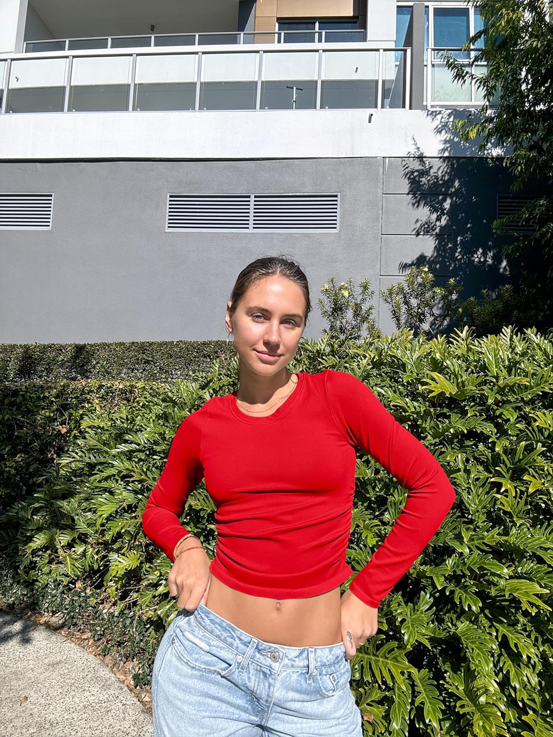 OQQ Womens Shirts Long Sleeve Crew Neck Ruched Stretch Basic Fitted Tee Shirts Tops