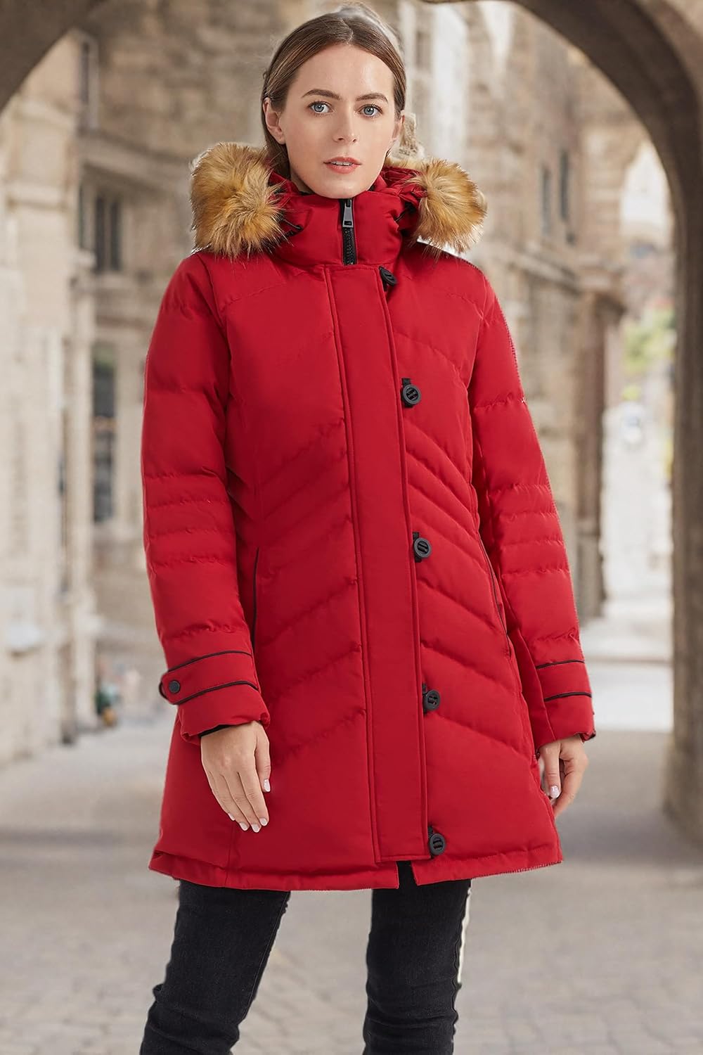 Orolay Women’s Hooded Slim Puffer Jacket Quilted Mid Length Winter Down Coat