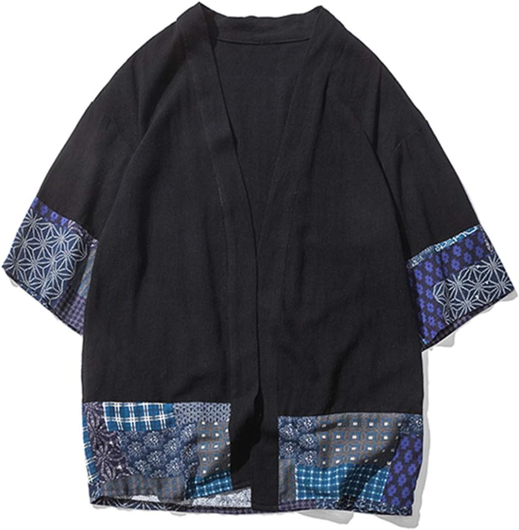 perdontoo Men’s Casual Kimono Shirt Light Linen Short Sleeve Open Front Cardigan