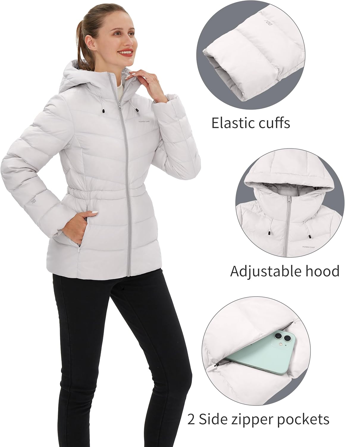 Pioneer Camp Women’s Down Puffer Jacket Water-Repellent Winter Coat Quilted Fuffy Outerwear with Hood