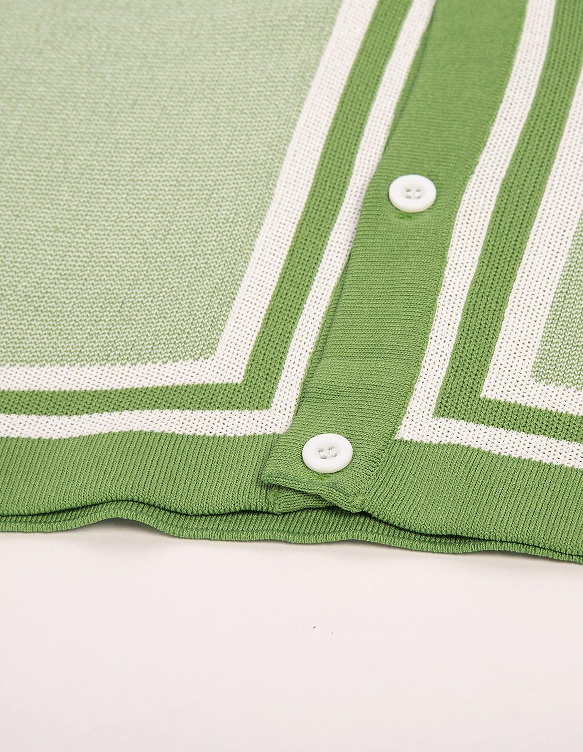 PJ PAUL JONES Men’s Vintage Stripe Knit Polo Shirts Short Sleeve Stylish Button Down Cardigan Sweater