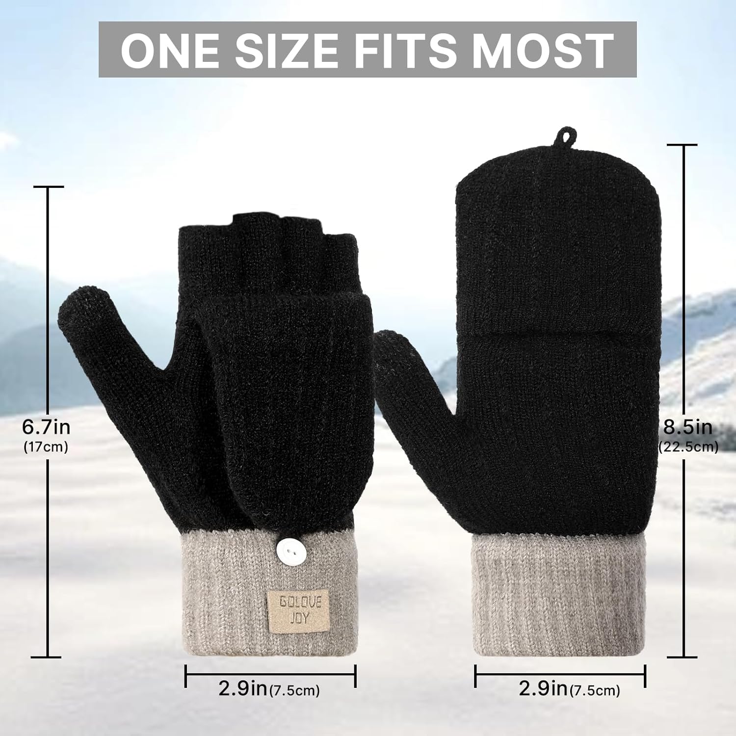 Pleneal Winter Fingerless Gloves for Women Men – Women’s Winter Gloves, Convertible Half Finger Knit Gloves for Cold Weather