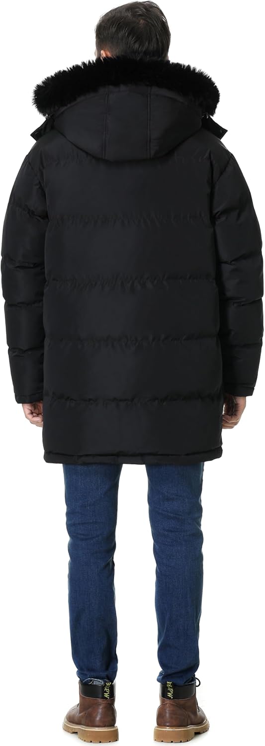 Pooluly Men’s Winter Puffer Parka Jacket Waterproof Long Down Jacket Warm Hooded Coat
