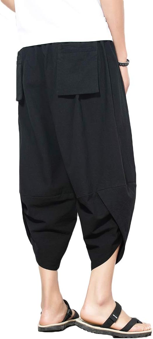 PRIJOUHE Men’s Harem Capri Pants, Wide Leg Mens Capris, Summer Linen Pants