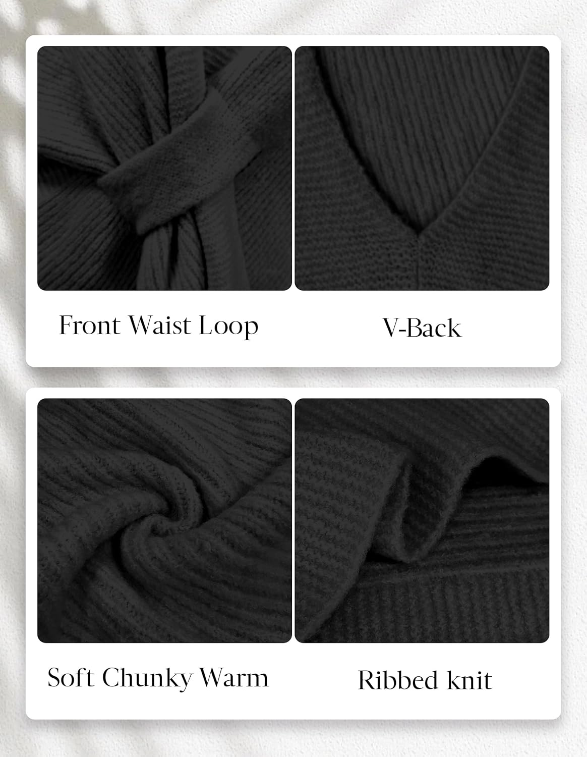 The Shawls’ detail: Front waist loop—Chunky warm fabric—Ribbed knit