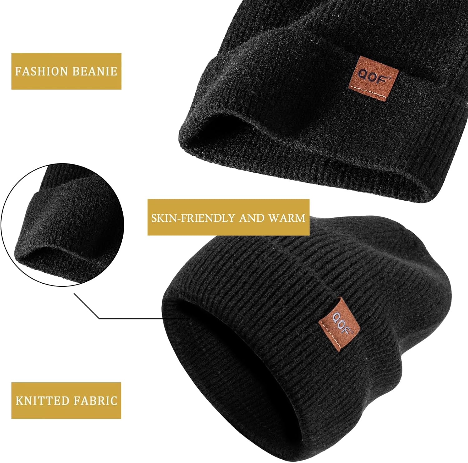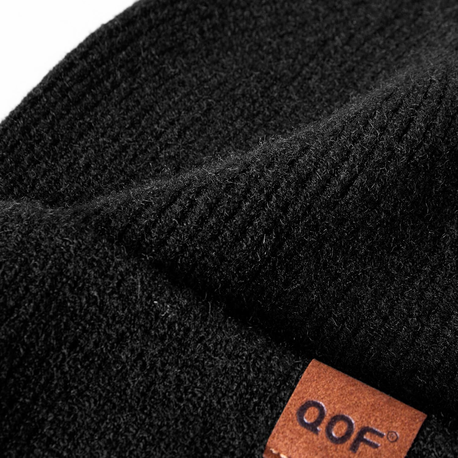 QOF Winter Fashion Wool Knitted Beanie Hat for Women Men, Thickened Warm Lined Unisex Ski Hat Skull Cap