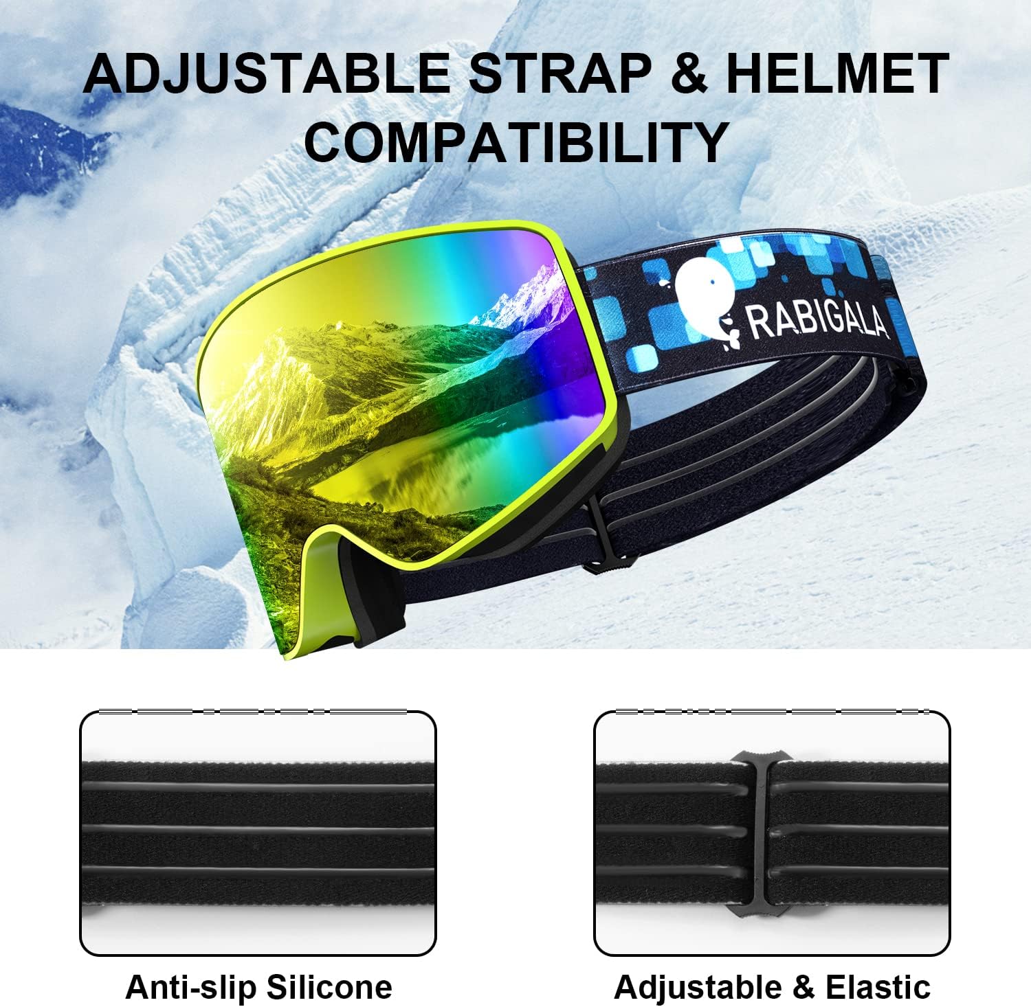 RABIGALA Ski Goggles OTG Snow Snowboarding Goggles Frameless Anti-fog Skiing Goggles for Women Men Adult