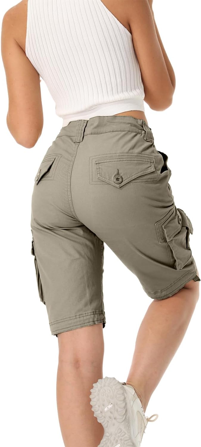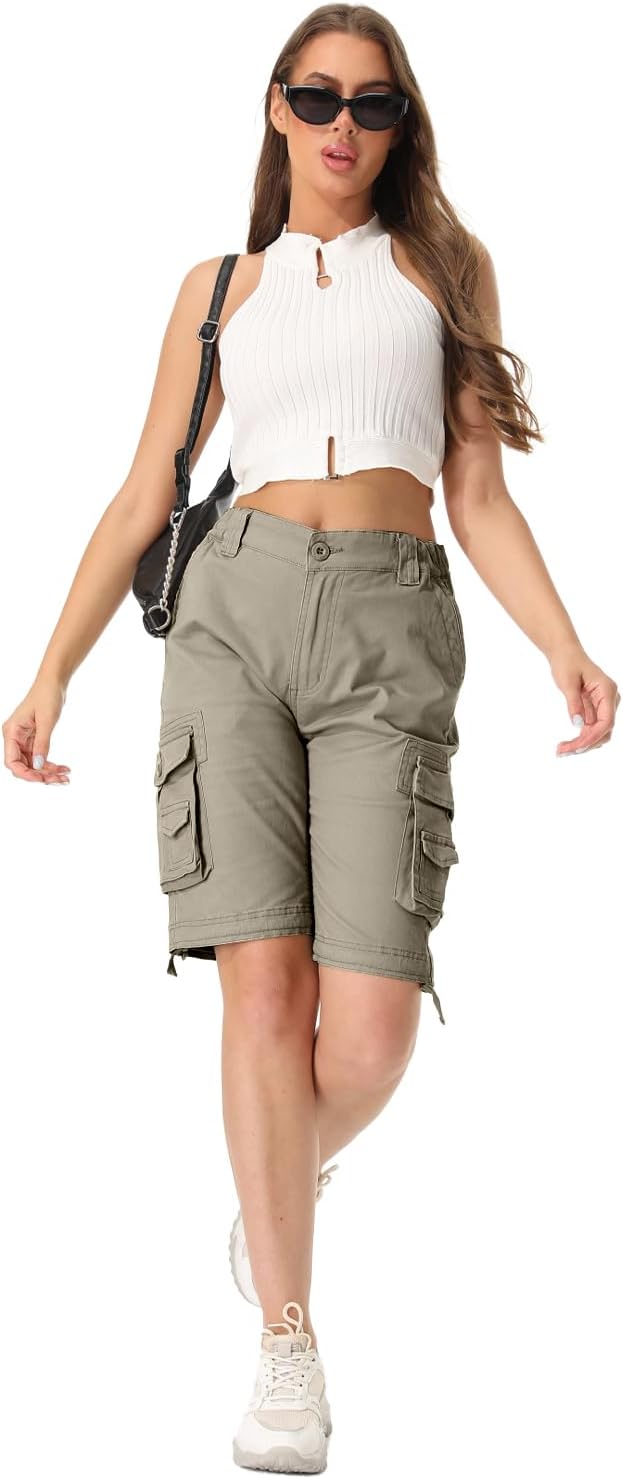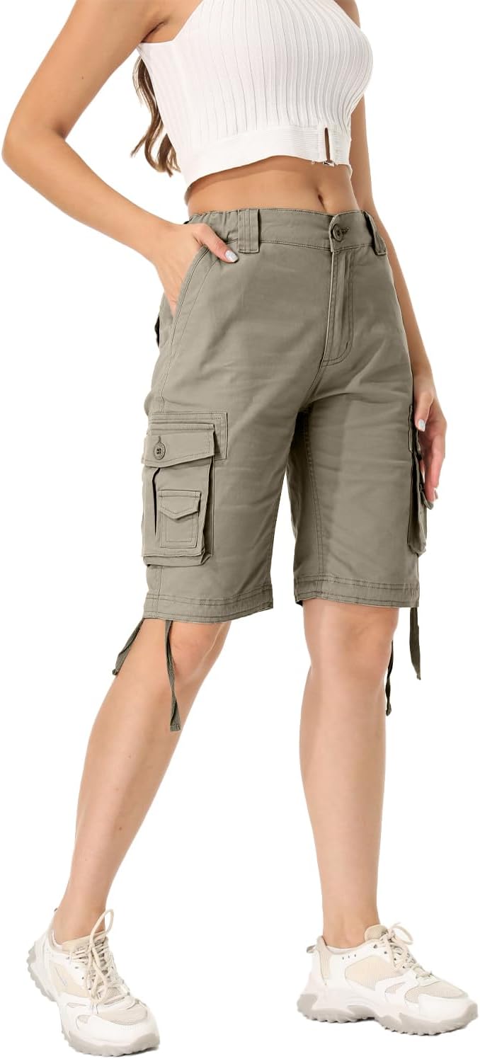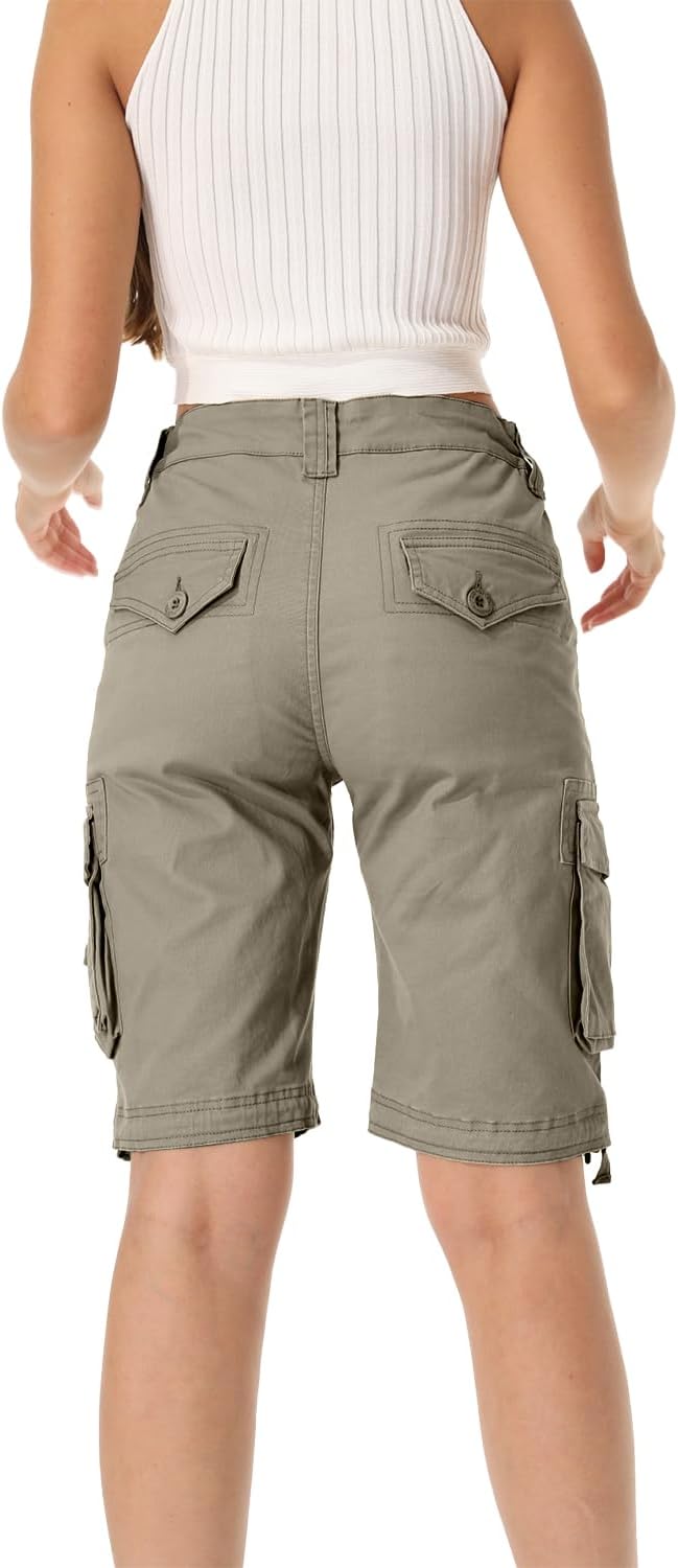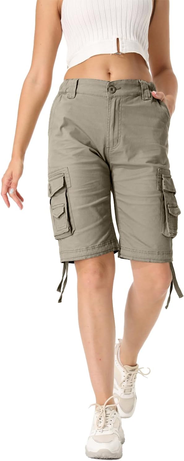 Raroauf Women’s Cotton Casual Multi-Pockets Relaxe-Fit Twill Bermuda Cargo Shorts