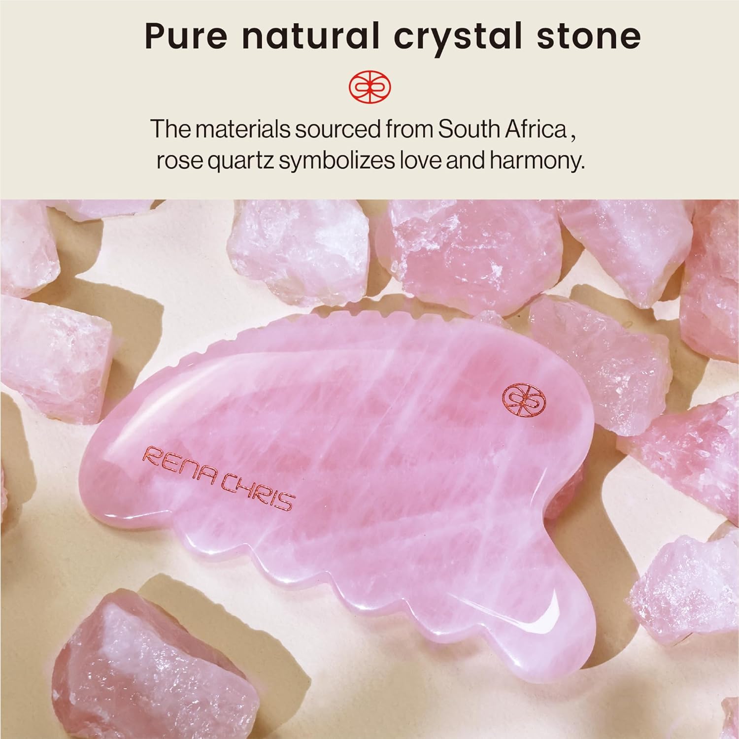 Sourced from Nature:Rena Chris gua sha tool is handcrafted from 100% natural Rose Quartz, Rose Quartz possesses healing properties that could help in self-care and love-related communication