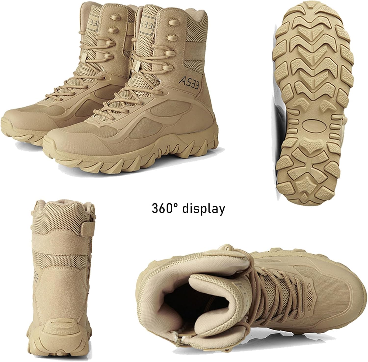 Renyqatt Men’s Tactical Boots 8 Inches Lightweight Work Military Boots Side Zipper Jungle boots Combat Desert boots