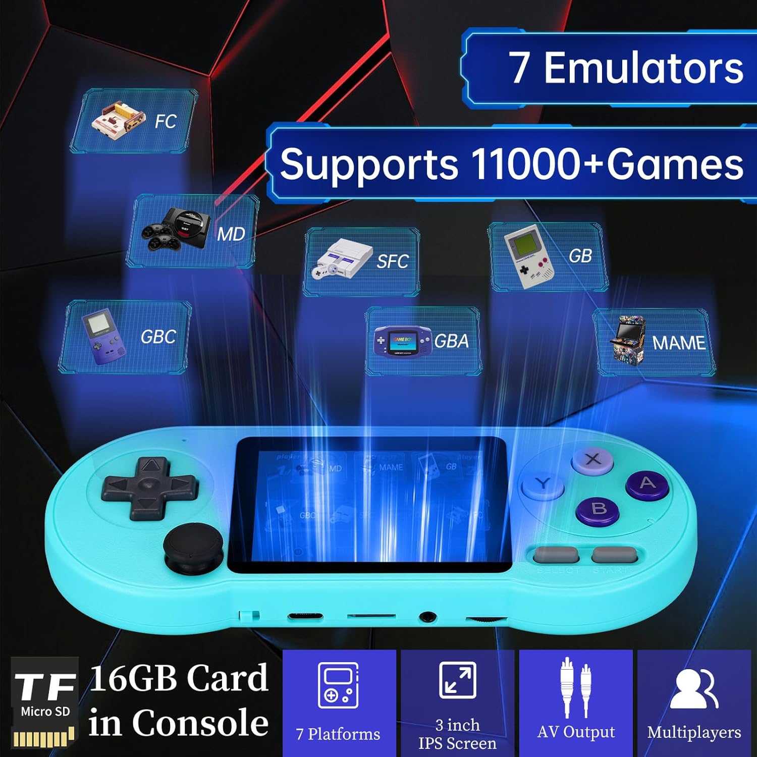 Retro Handheld Game Console – Handheld Games for Adults Blue, 3.0 Inch IPS Screen,Portable Game Console for Kids,Adult,Lover(11000Games Blue)