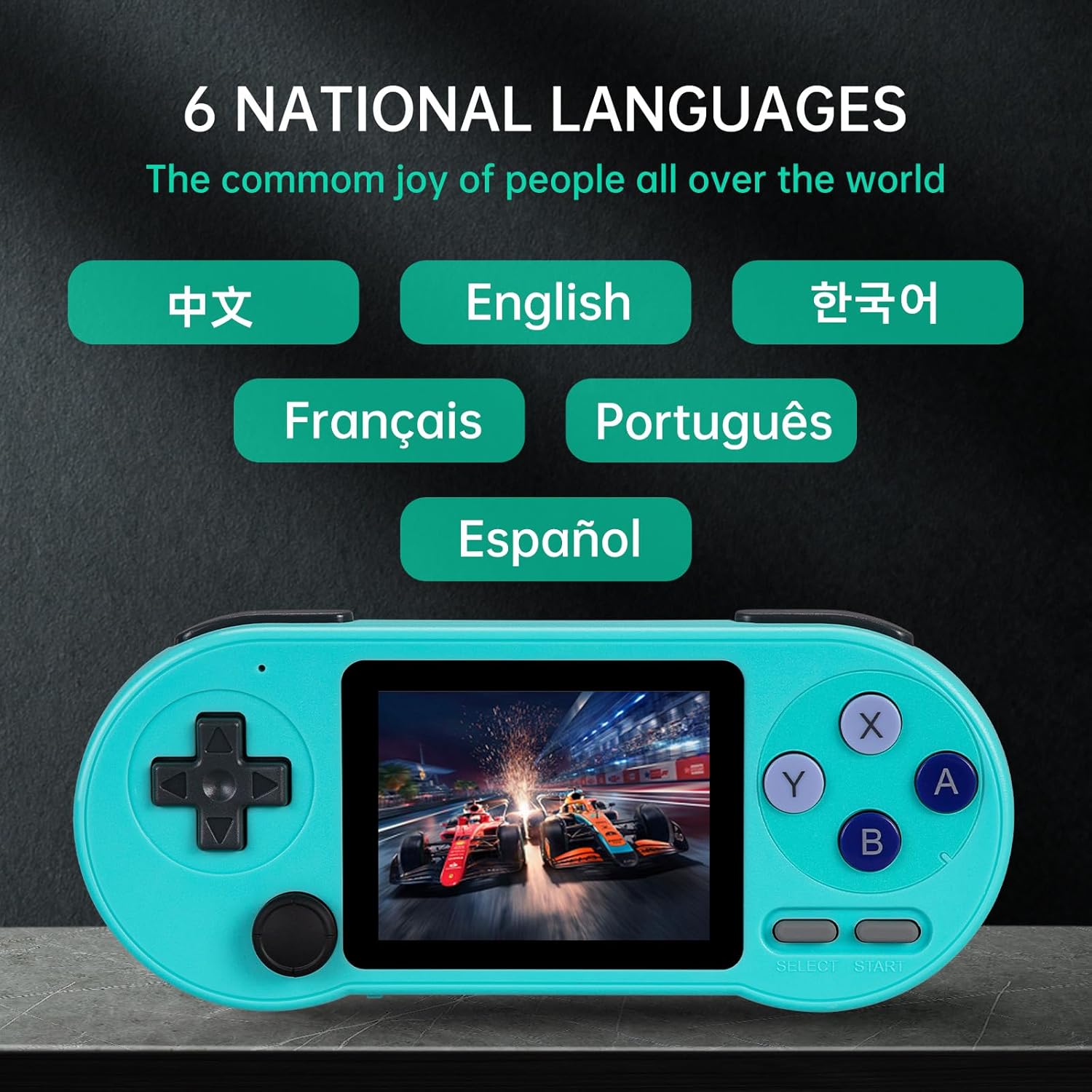 Rechargeable Portable Game Console — Built-in 1500 mAh large-capacity rechargeable battery, which supports long-time gaming for up to 4-7 hours when fully charged. And this handheld game console is small and portable, easy to carry in your pocket or bag, so you can have fun anytime, anywhere