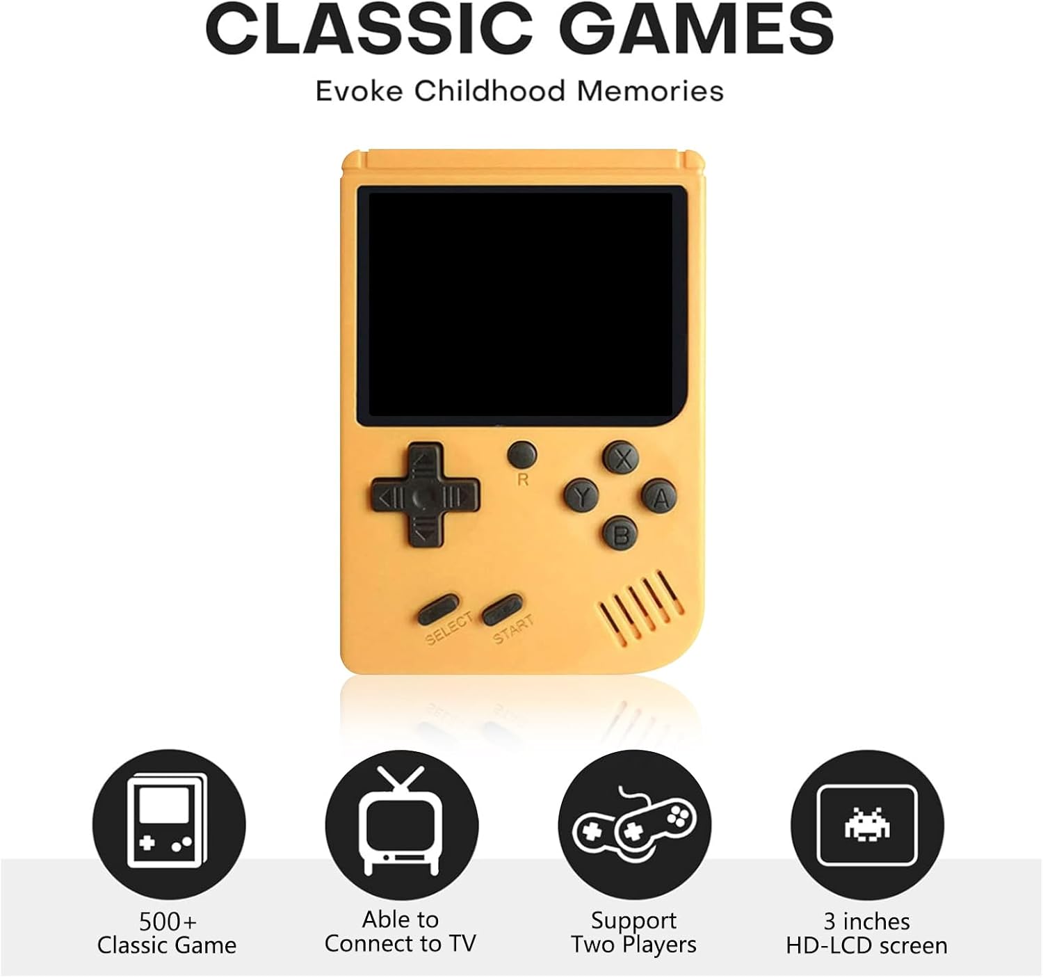 Retro Handheld Game Console, Mini Arcade Machines Built-in 500 Classical Games, Portable Handheld Video Games for Kids and Adult, Game Console Box Support TV Output. (Yellow)