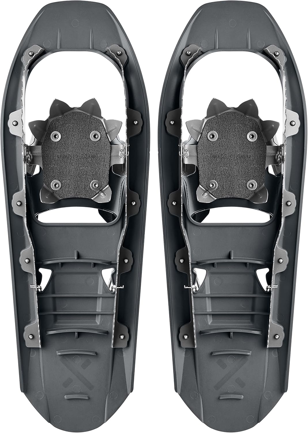 Strong Material: Rigid one-piece deck and hardened manganese steel frames make these snowshoes extra durable and resistant to dents, bends, and scrapes.