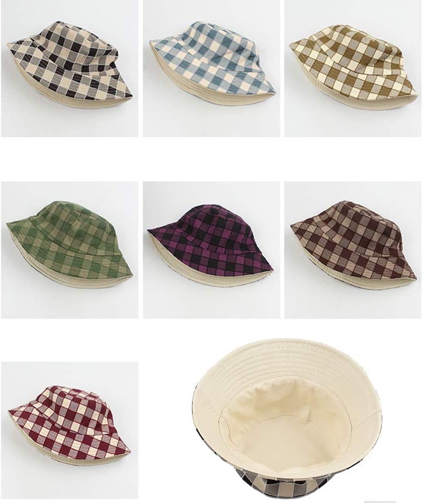 Reversible Plaid Bucket Hats for Men Women Outdoor Spring Summer Fishing Fisherman Sun Cap Foldable