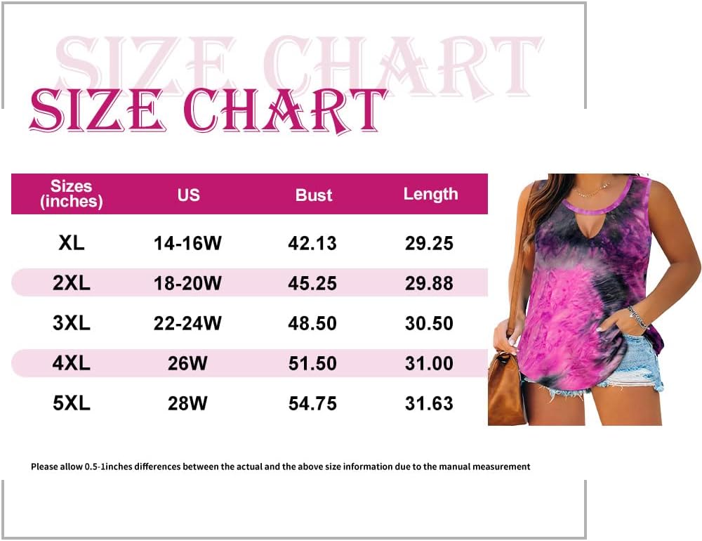 Ritera Women Tank Tops Plus Size Summer Tie Dye Sleeveless Causal Tops