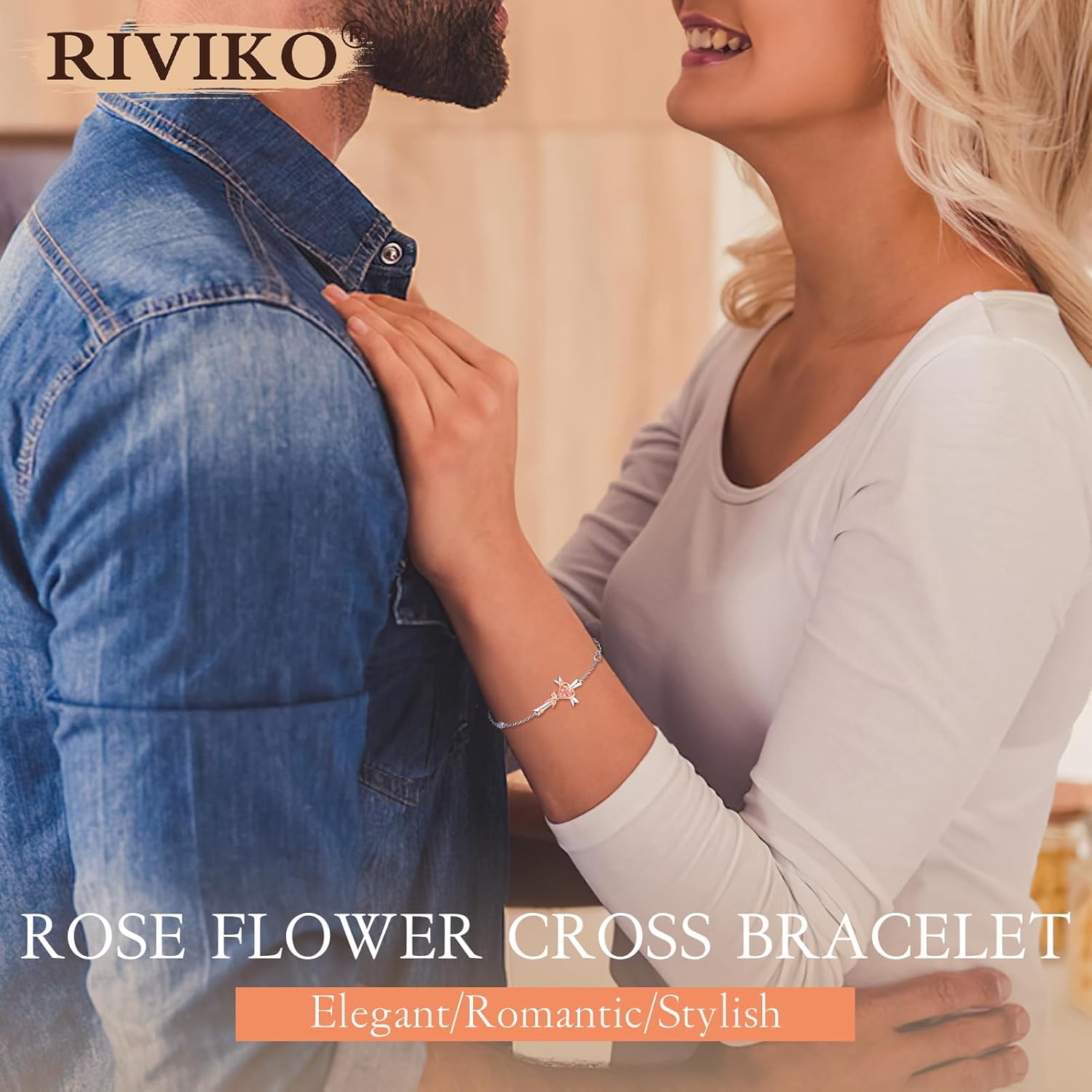 RIVIKO 925 Sterling Silver Cross Birthstone Bracelets for Women Cross Rose Bracelet Trendy Adjustable Link Mothers Day Christmas Anniversary Jewelry Gift for Women Her Wife Girlfriends Daughter Mom