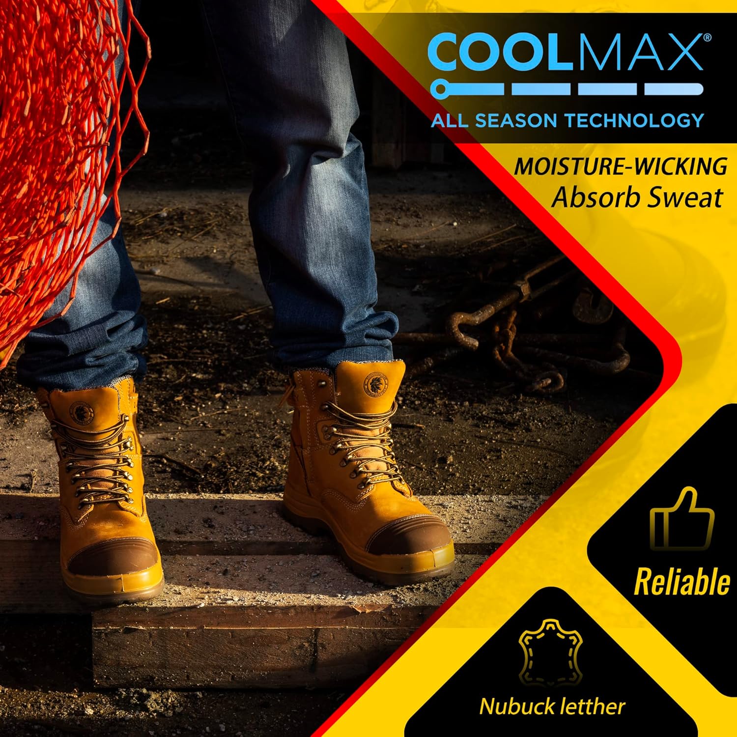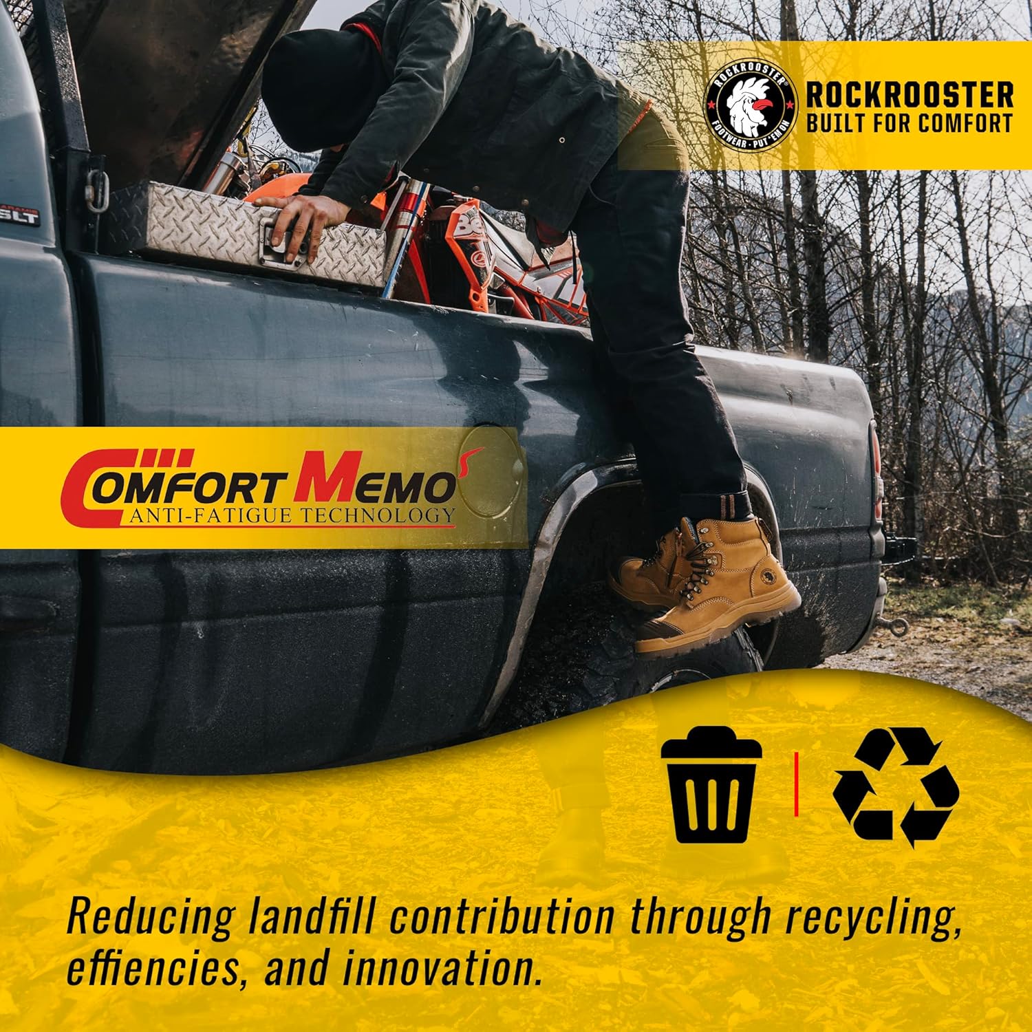 ROCKROOSTER Work Boots for Men,7 inch,Steel Toe,Side Zipper, Leather Shoes,Static Control, Breathable,Quick Dry(AK232Z -AK245Z