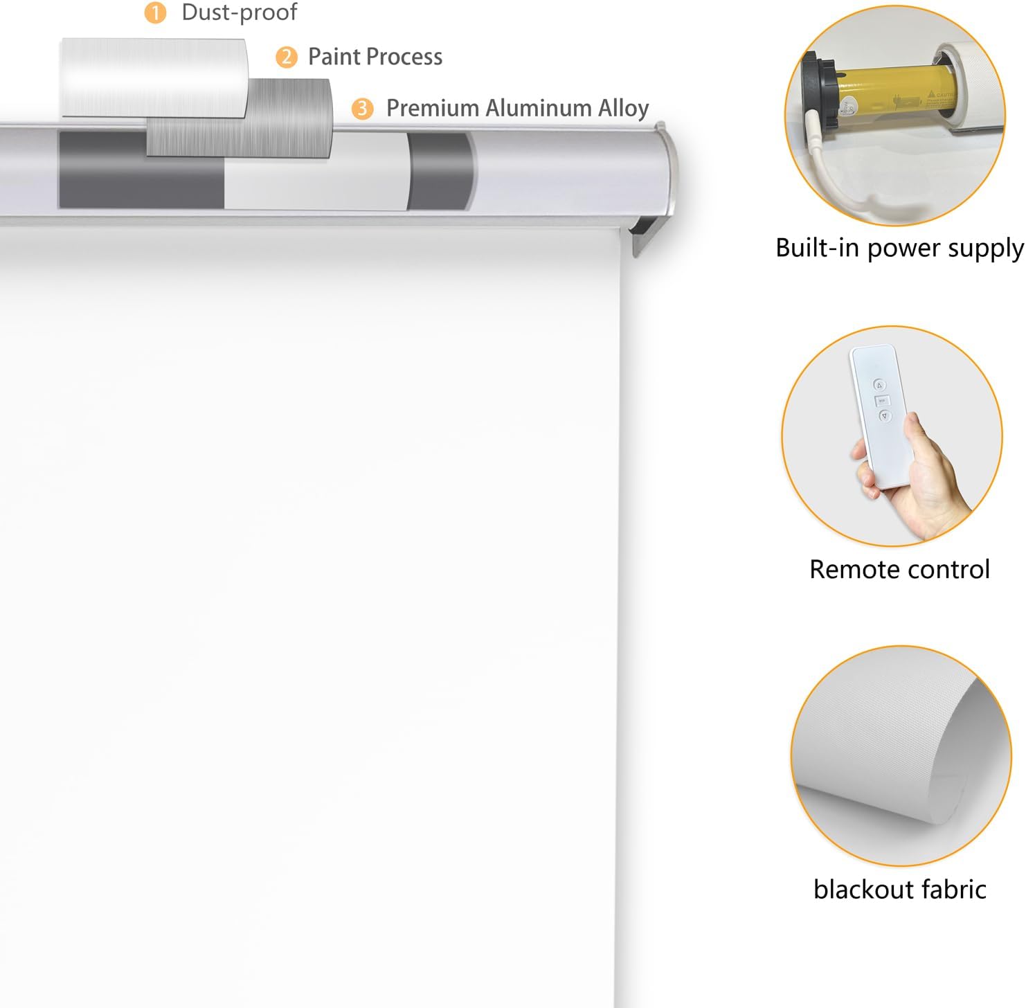 100% BLACKOUT DESIGN: Using special shading material, this electric roller blinds are 100% blackout, providing sound and thermal insulation, while providing privacy protection and light blocking, reducing the harmful effects of UV rays. The top and bottom rails are uniform in color, beautiful, sturdy and durable.