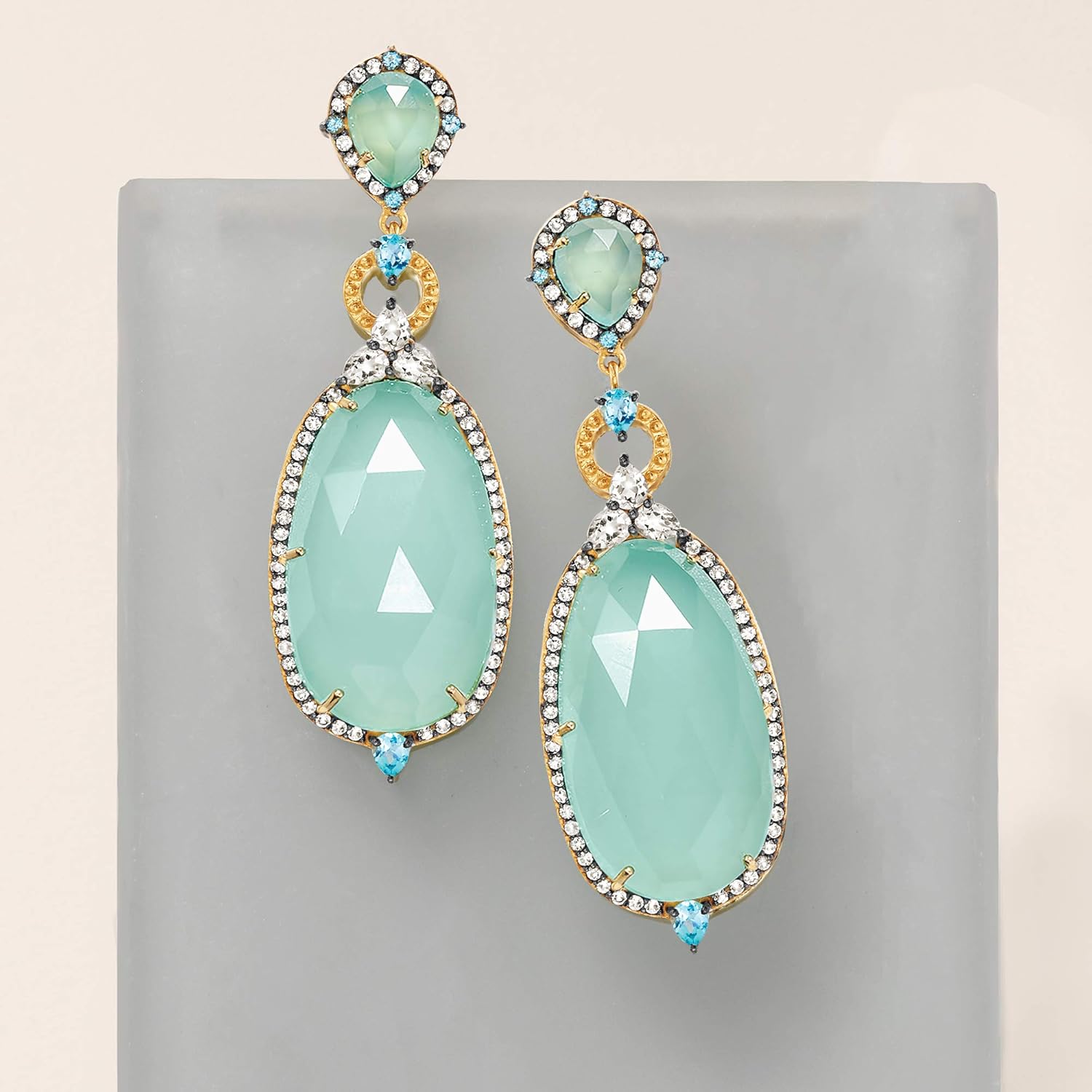 Ross-Simons Aqua Chalcedony and 2.60 ct. t.w. Blue and White Topaz Drop Earrings in 18kt Gold Over Sterling