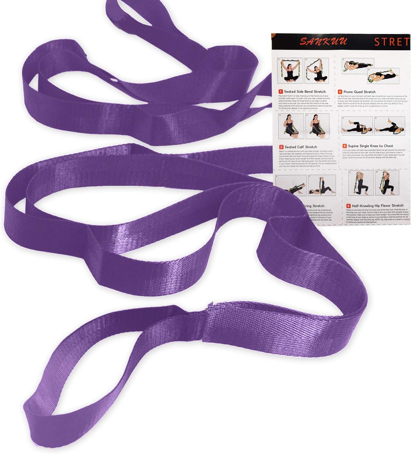 SANKUU Yoga Straps Stretching Strap with 12 Loops Workout Poster, Straps for Stretching Physical Therapy Equipment Long Stretch Out Bands for Exercise, Pilates and Gymnastics for Women Men