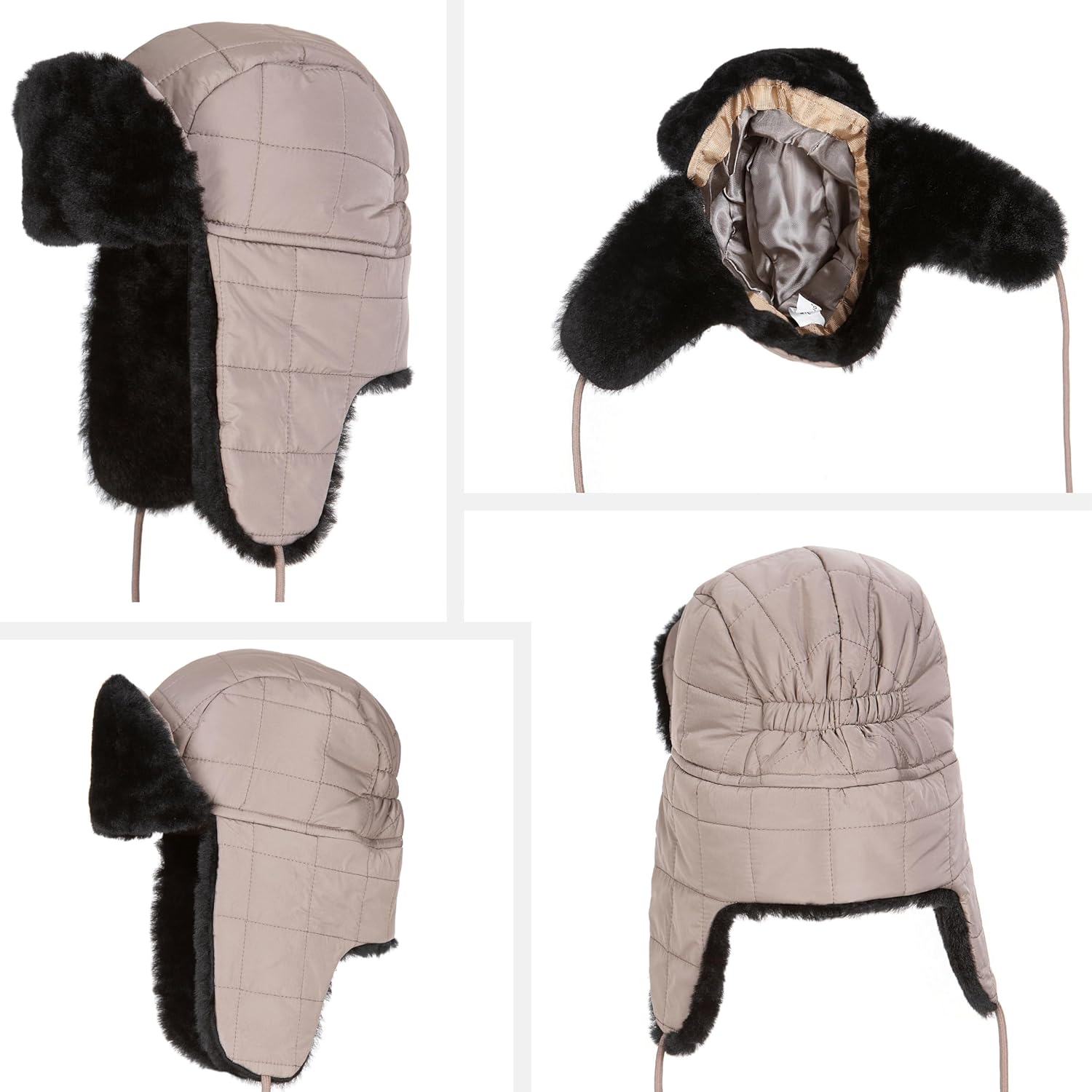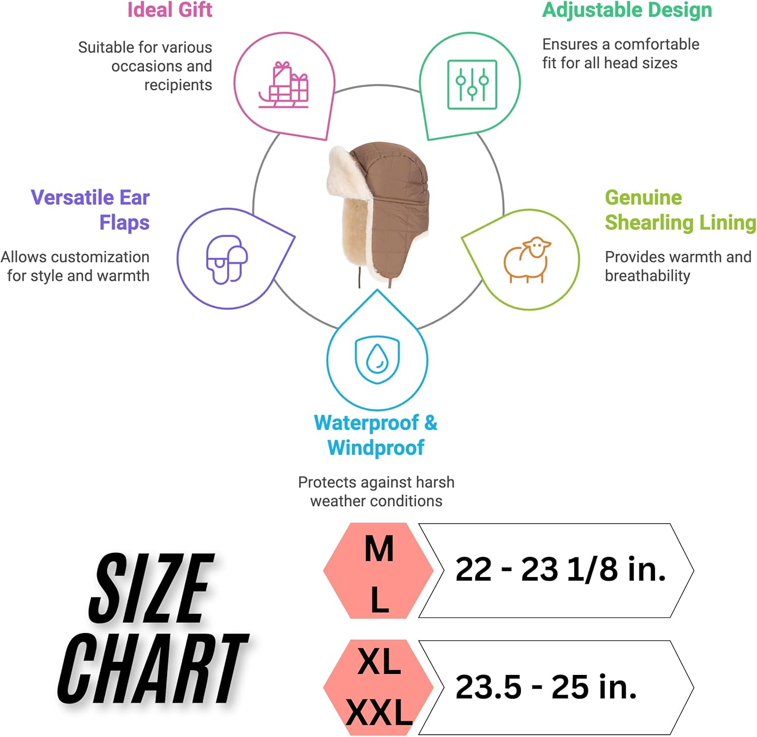 Shearling Sheepskin Ushanka Trapper Fur Hat – Men’s & Women’s Leather Aviator Winter Cap