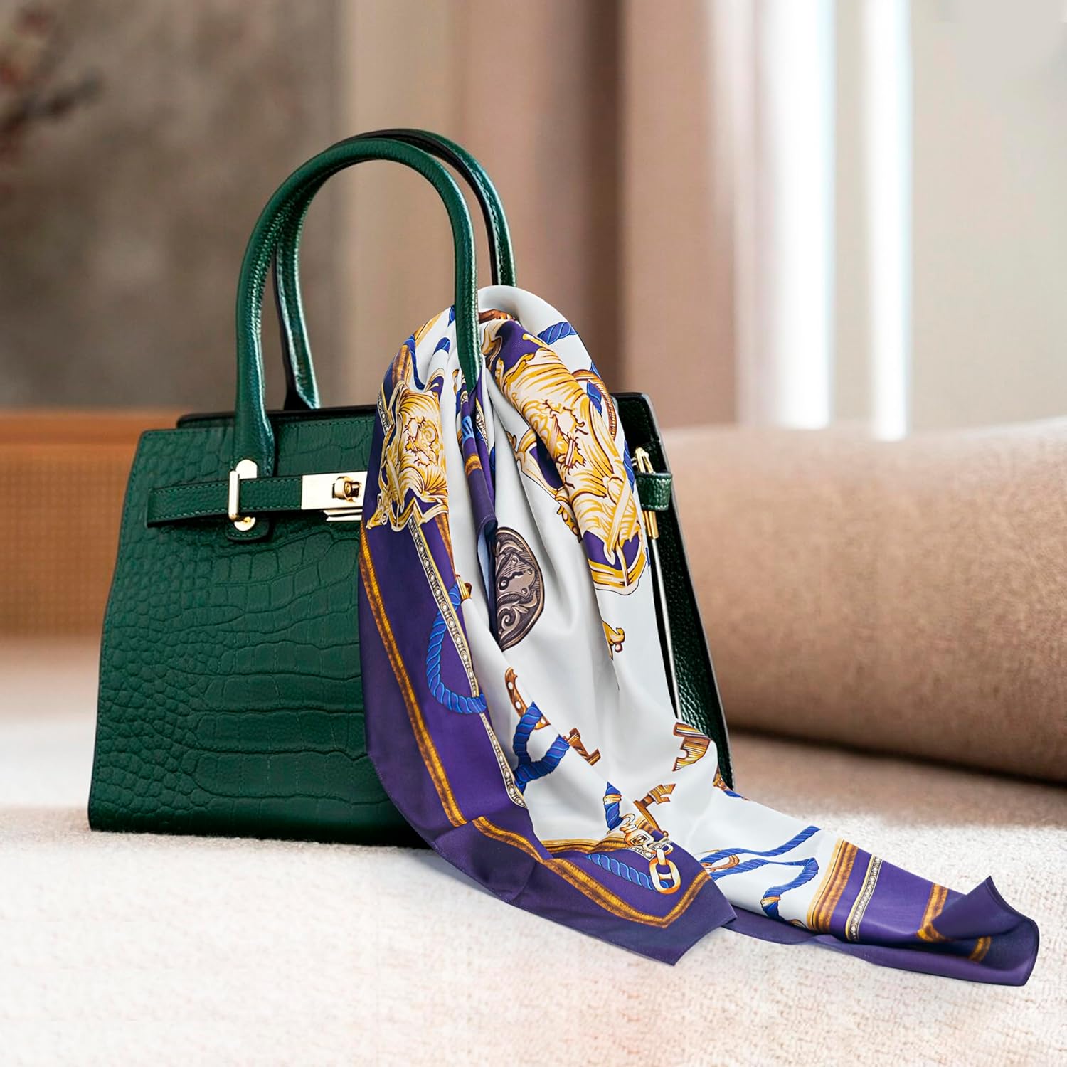Silk Scarf for Women Elegantly Designed 35” Hair Scarf for Sleeping with Silk Scrunchie and Scarf Ring