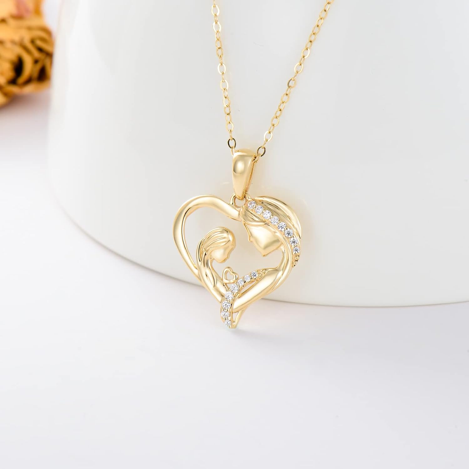 SISGEM Solid 14K Gold Mom Necklace for Women Mother Love Heart Pendant Necklace Birthday Anniversary for Mom, Wife, Grandma, 16″+ 2″