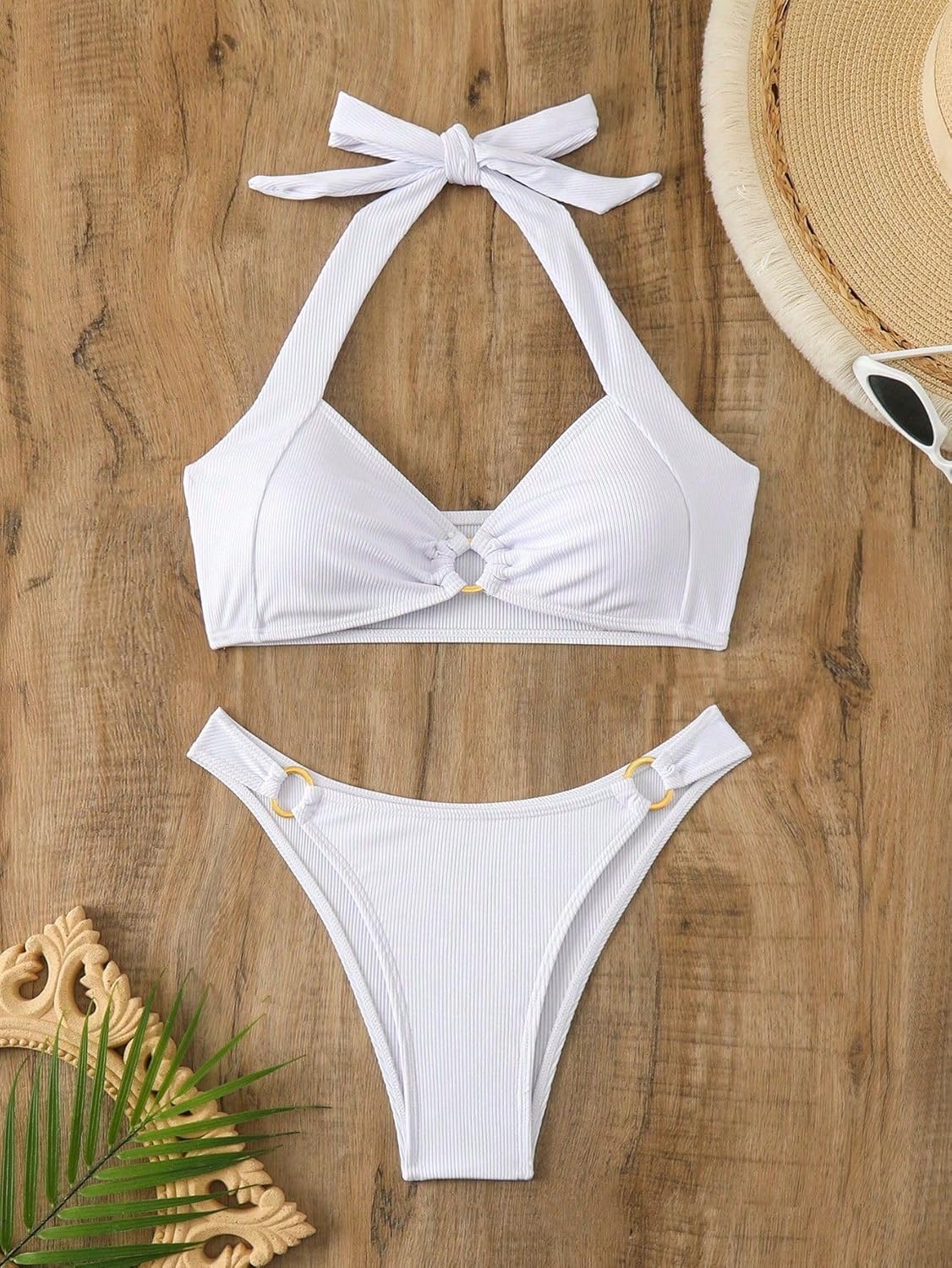SKAYS Women’s Sexy Two Piece Bikini Sets Triangle Swimsuits Halter Ring Stylish High Cut Thong Swimwear Bathing