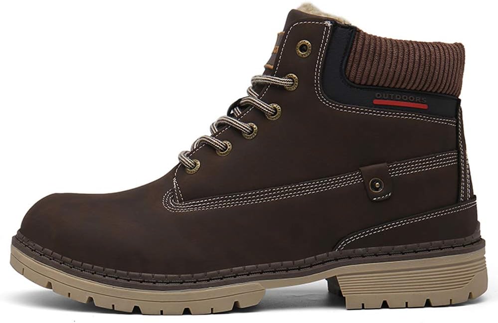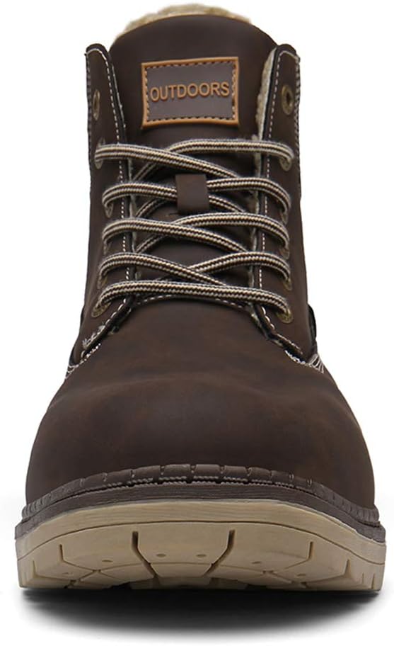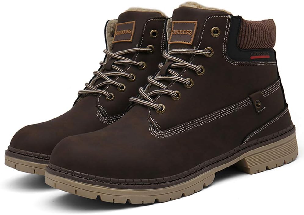 SKDOIUL Mens Winter Snow Boots Leather Ankle Walking Shoes with Warm Fur