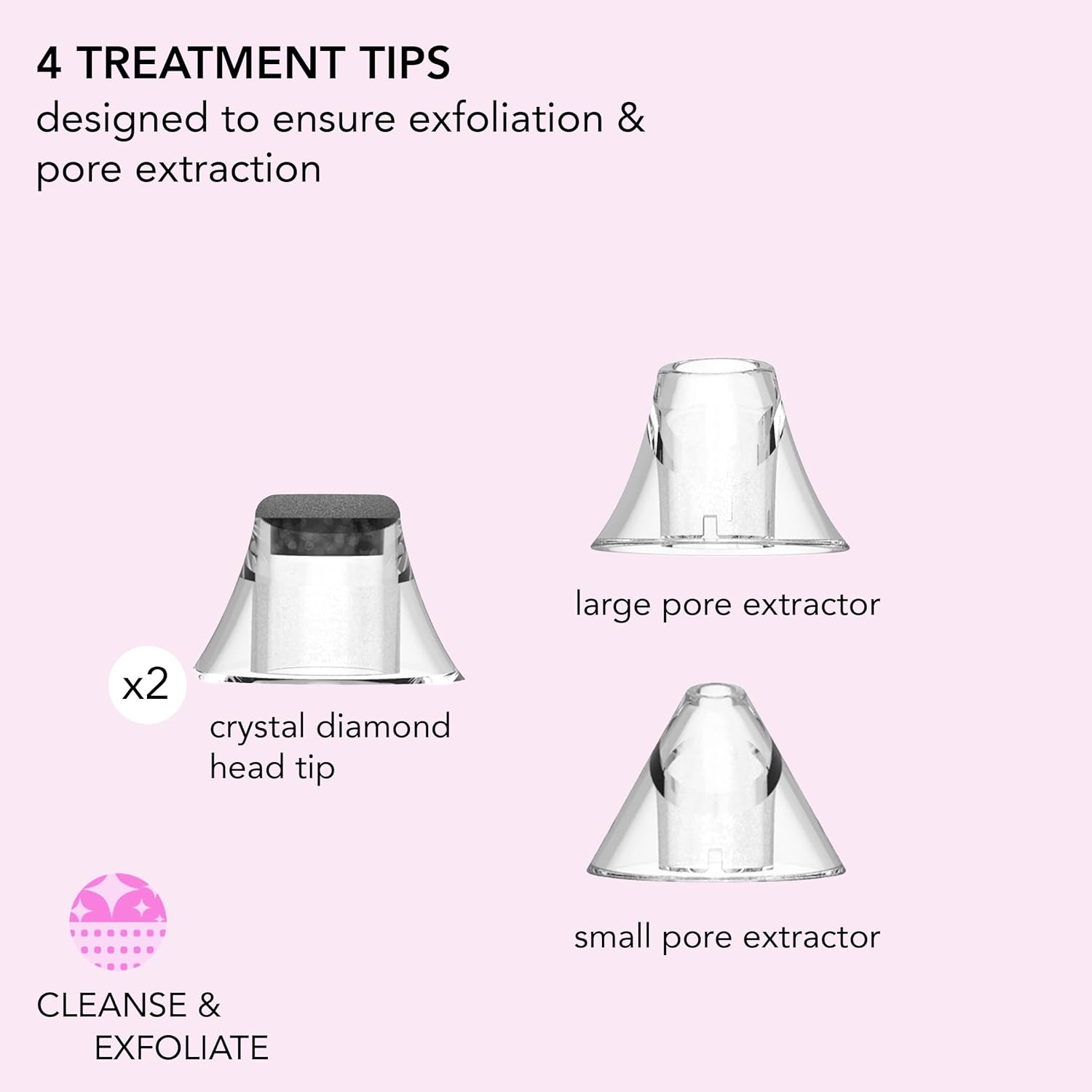 4 Microdermabrasion Treatment Tips included: The small pore extractor removes blackheads and whiteheads, a large pore extractor for targeting clogged pores, and 2 crystal diamond-head tips for deeper exfoliation.