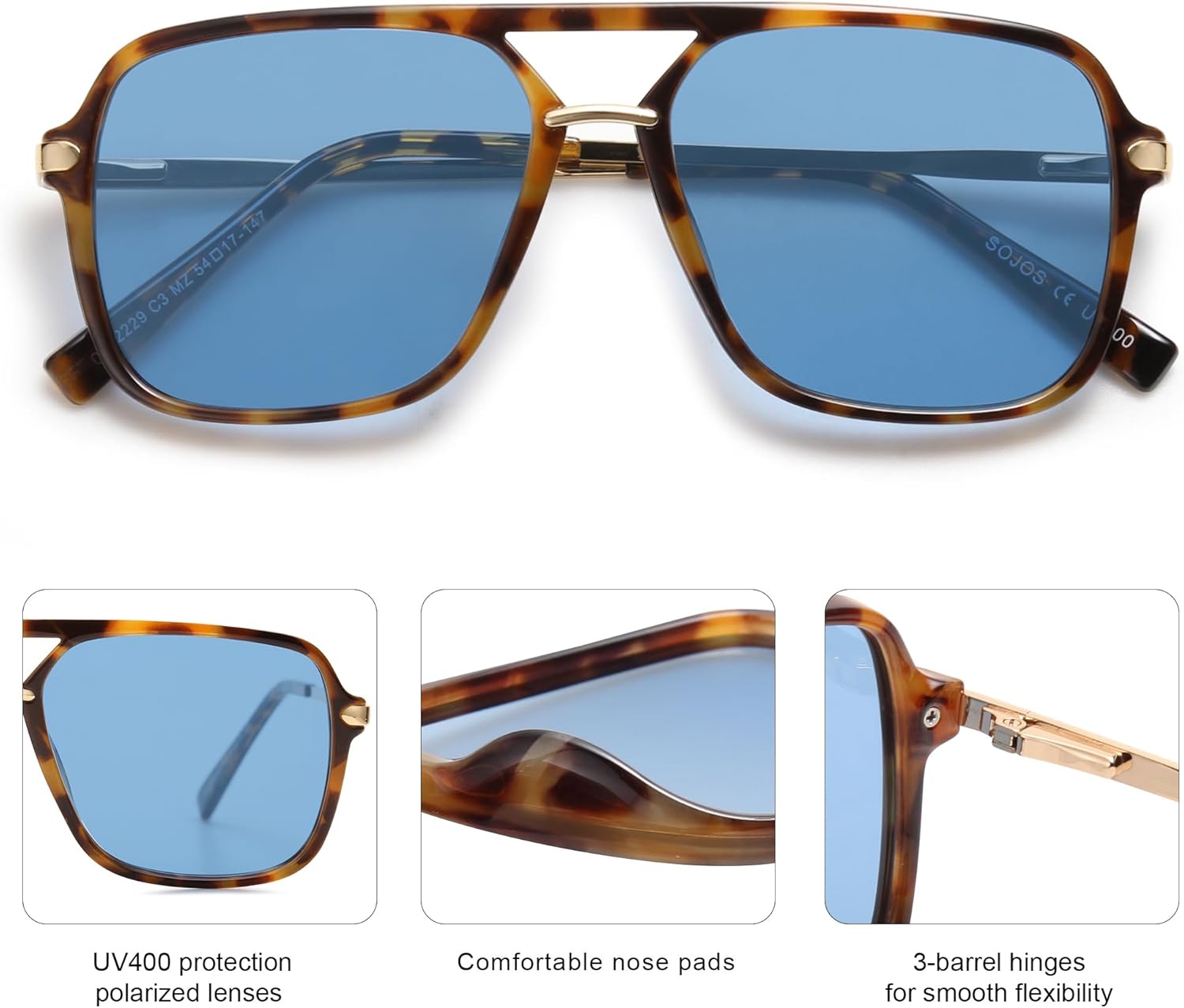 SOJOS Sunglasses for Women & Men, Square, Retro, Polarized Lens, Trendy Aviator, 90s Shades