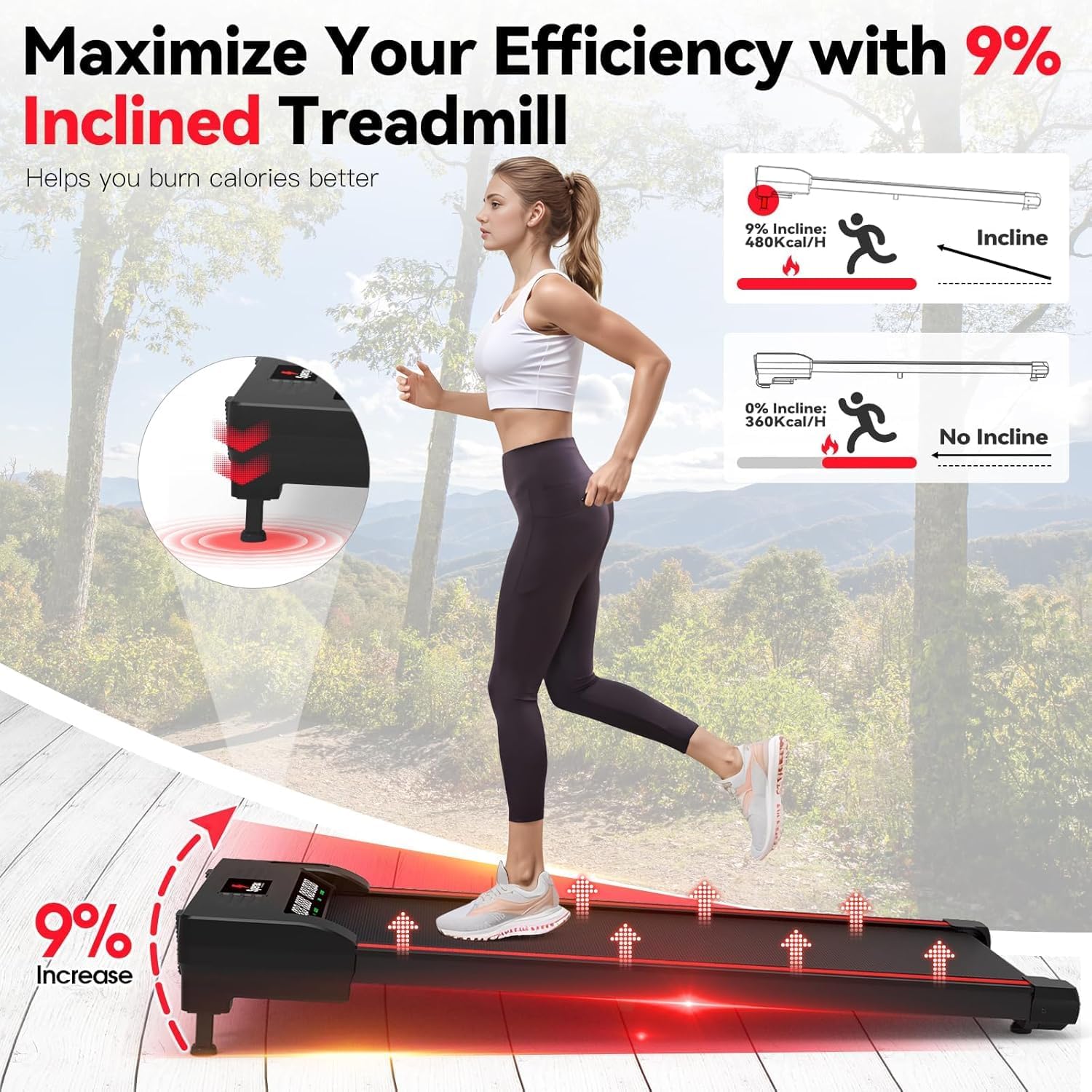 【4 in 1 incline walking pad 】incline walking pad can meet your different needs, You can choose sports mode, walking mode, working mode and tilt mode by remote control. The maximum tilt Angle is 9%, better exercise your legs and hips