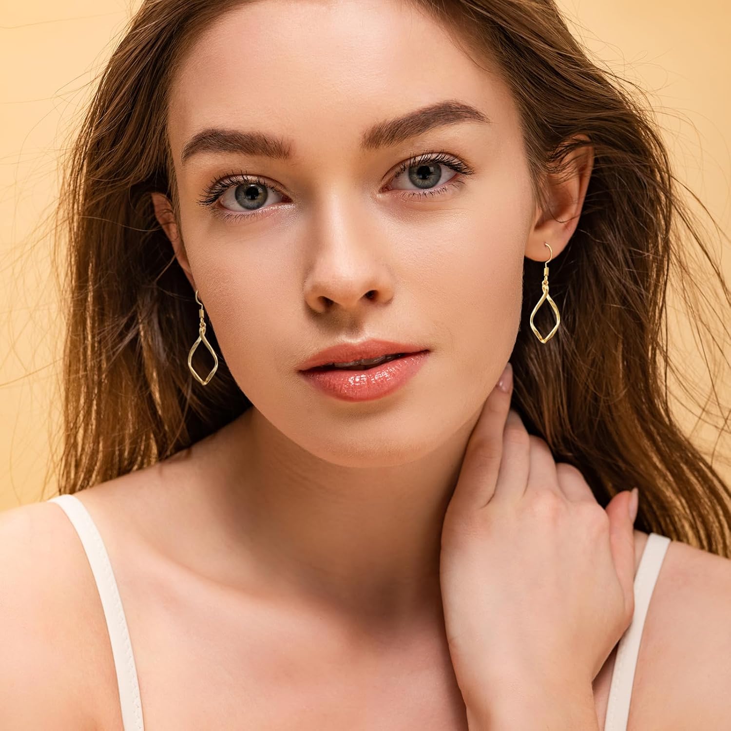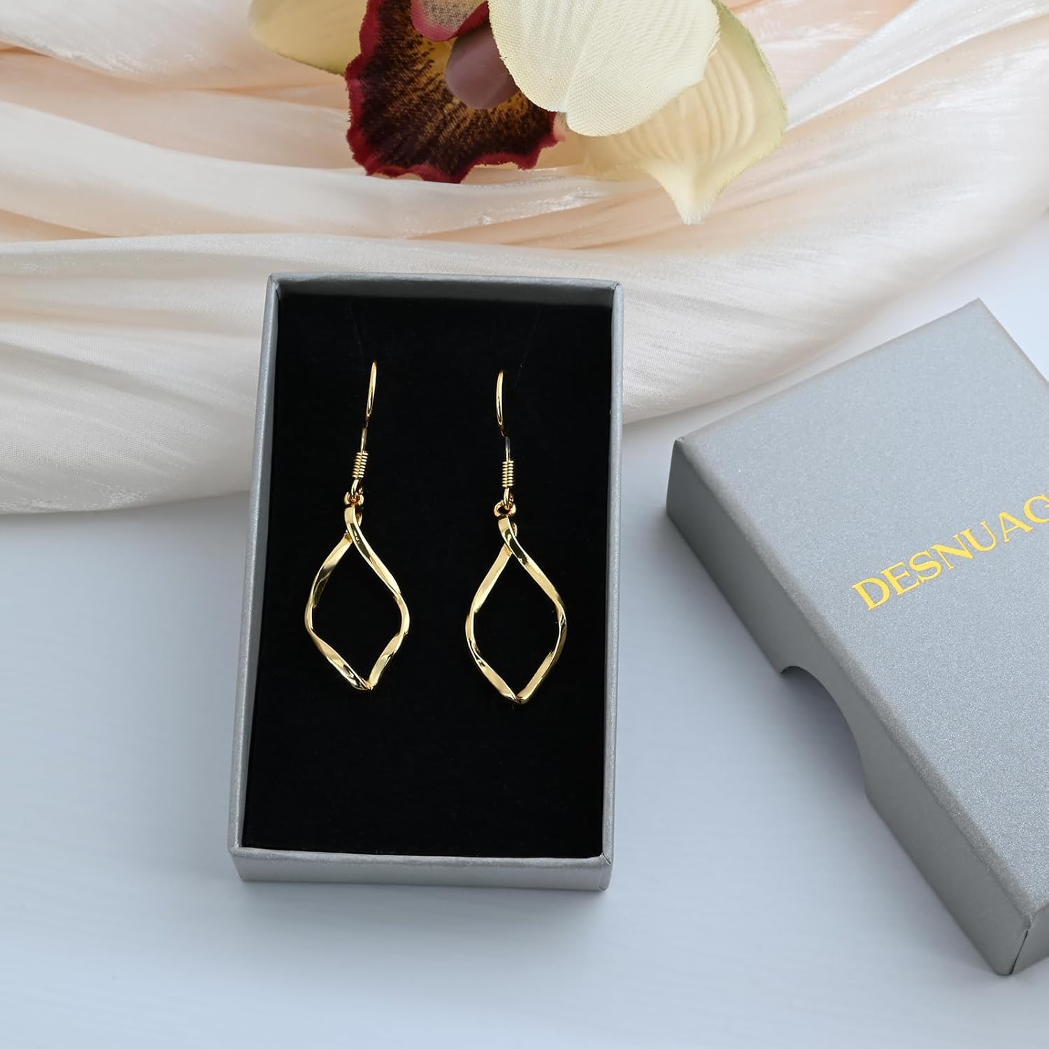 [Quality Materials] Our twist earrings electroplate 14k gold. It will not fade or rust. Gold earrings is hypoallergenic and preventing from ear infection, you can wear this dangle earrings even your ears are sensitive