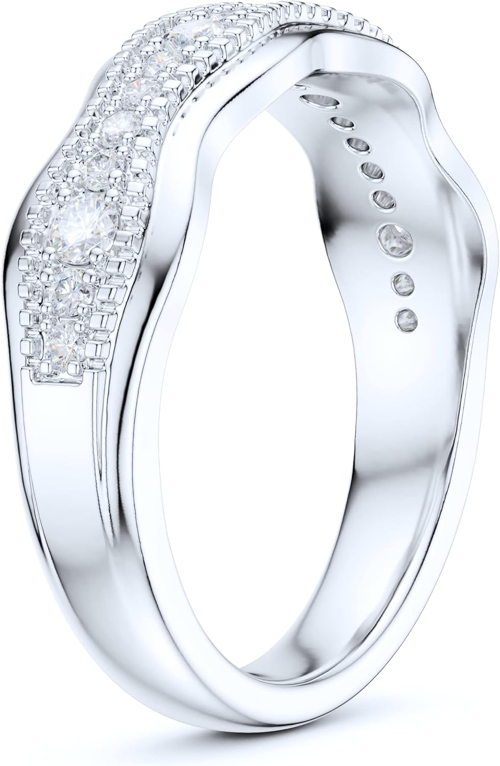 Sterling Silver Fancy Wave Shape Milgrain Simulated Round Brilliant Diamond or Genuine Moissanite Full Eternity Ring Wedding Band