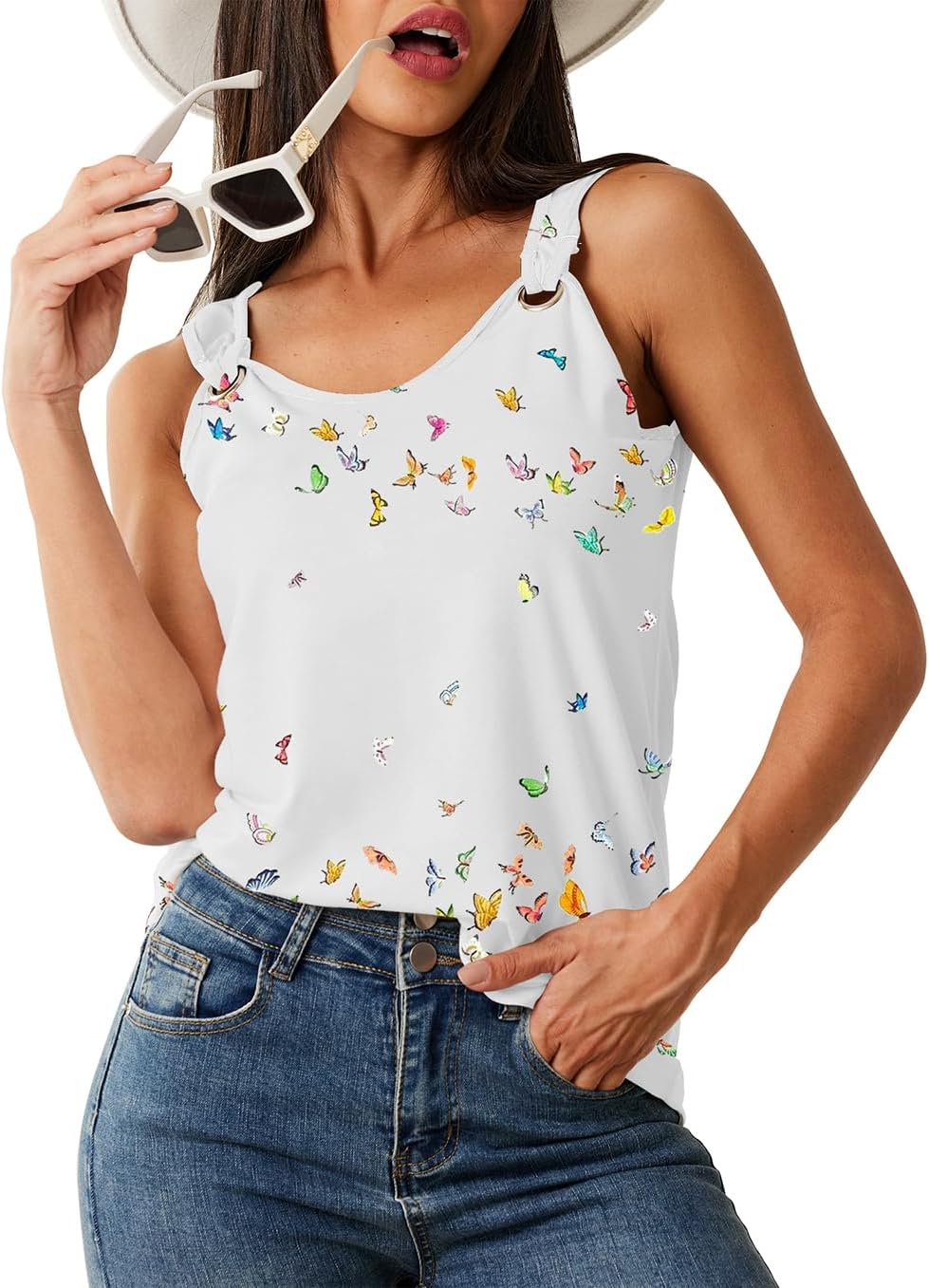 Women’s Sleeveless Scoop Neck Tank Tops Cute Printed Shirts Summer Casual Tops