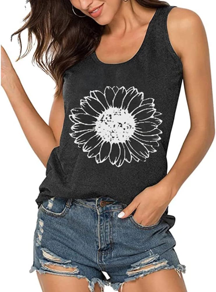 Clothing Length: RegularFeature: sunflower sleeveless shirts for women, sleeveless loose fit tank tops shirts, soft fabric, relaxed and fashion style, true size.This Tank Top is Suitable for Beach, Summer Vacation, Adventure Holiday, Party, Camping, Hiking, Shopping, Take Photo, Daily Life, etc.This Sleeveless Sunflower T-shirt is the Best Gift for Your Wife, Mother, Daughter, Girlfriend, Friends, Aunt, Sister, Grandmother or yourself.It is made of high quality materials, durable enough for your daily wearing.Stylish and fashion design make you more attractive.Comfortable material, suitable for a variety of occasions.
