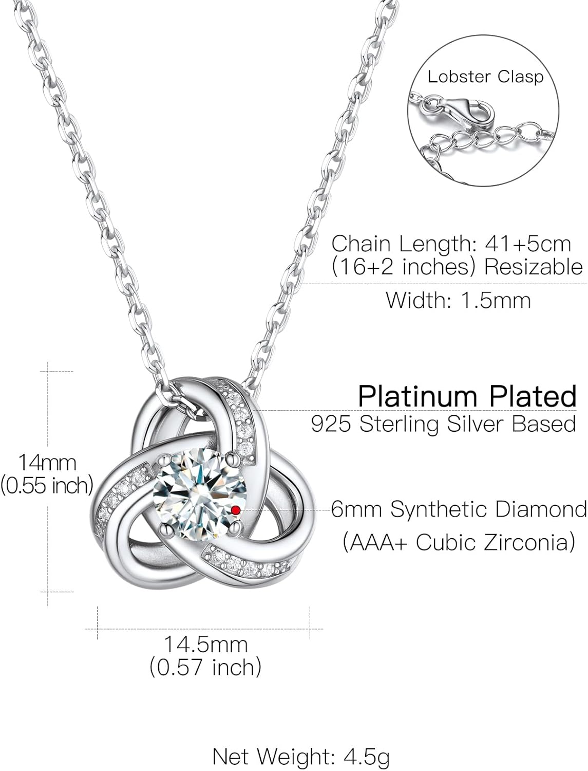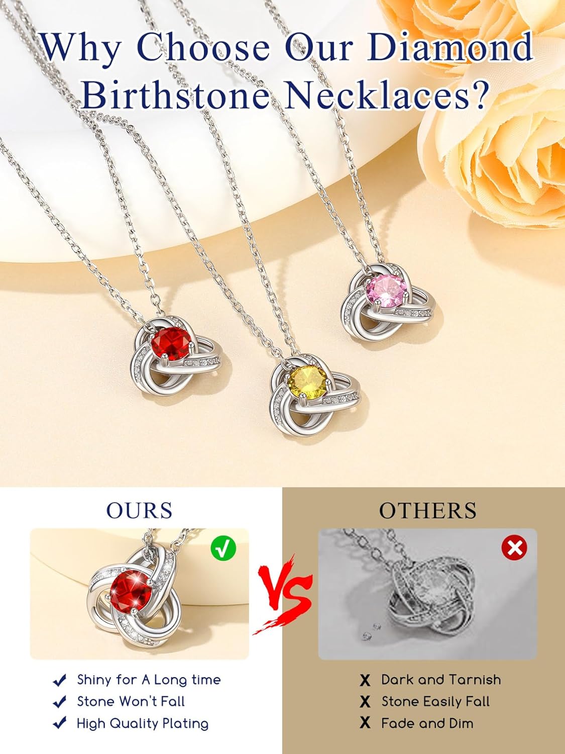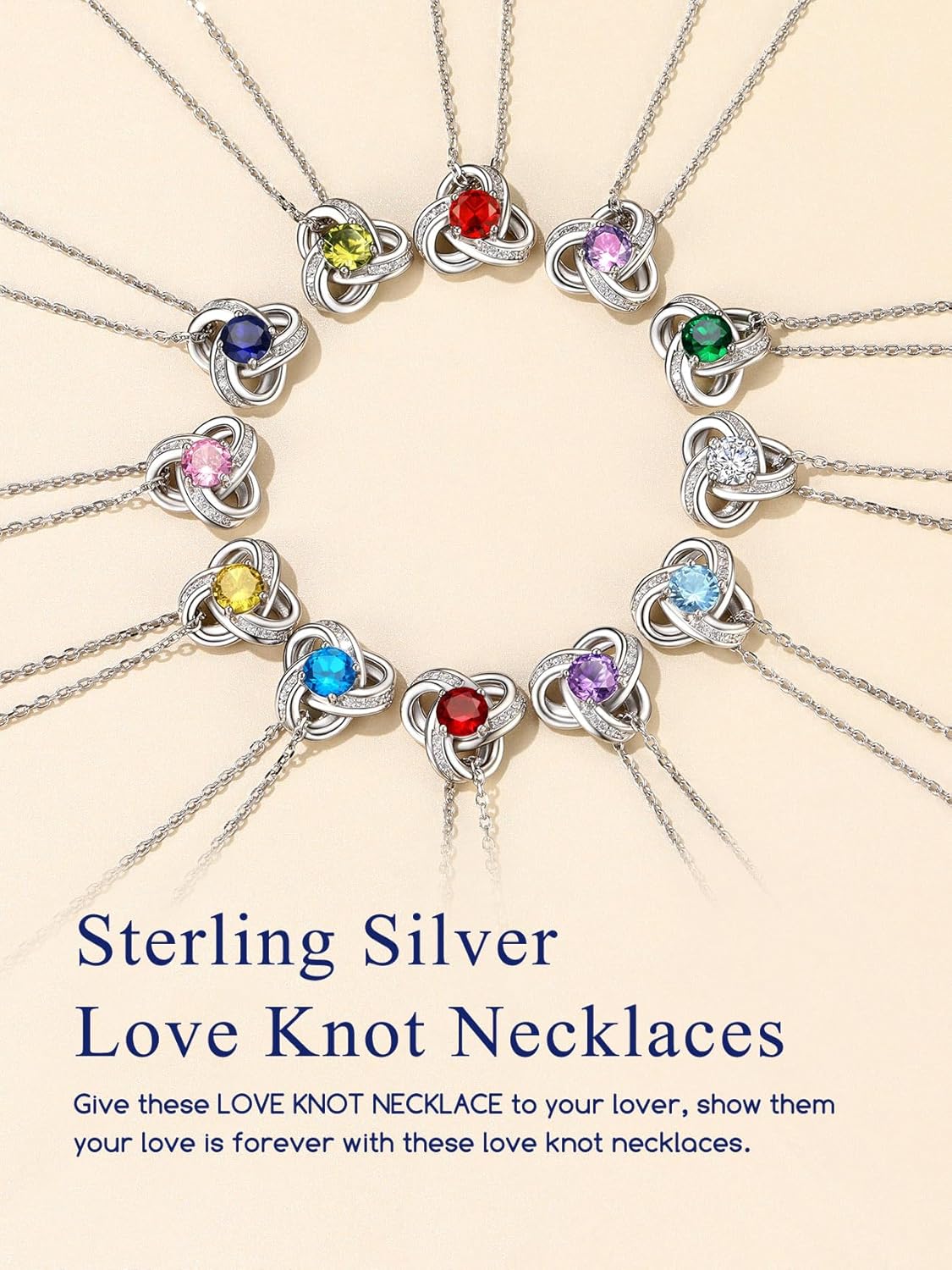Suplight Sterling Silver Birthstone Necklaces for Women, to My Wife Necklace from Husband Forever Love Knot Infinity Pendant Cubic Zirconia Mom BFF Friendship Necklaces Dainty Birthday Wedding Jewelry