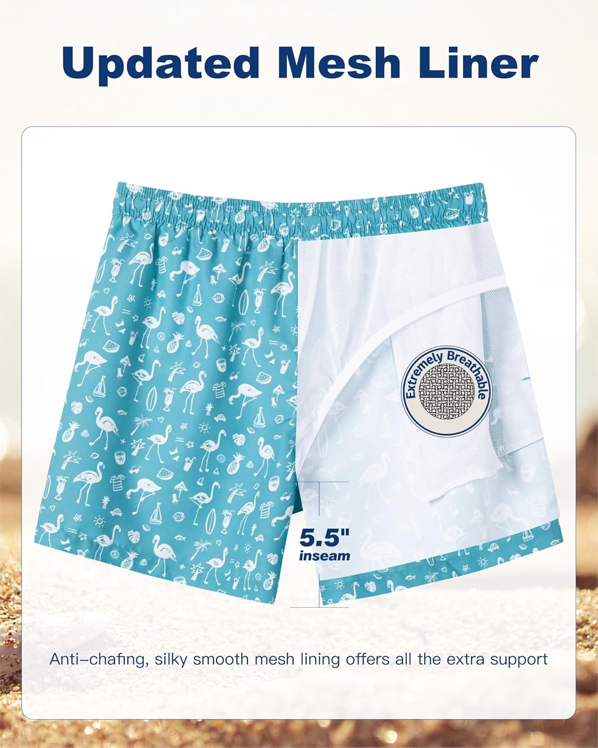 SURF CUZ Mens Swim Trunks 5 Inch Swim Shorts Quick Dry Bathing Suits for Men Beach Shorts Mesh Lining Swimming Trunks