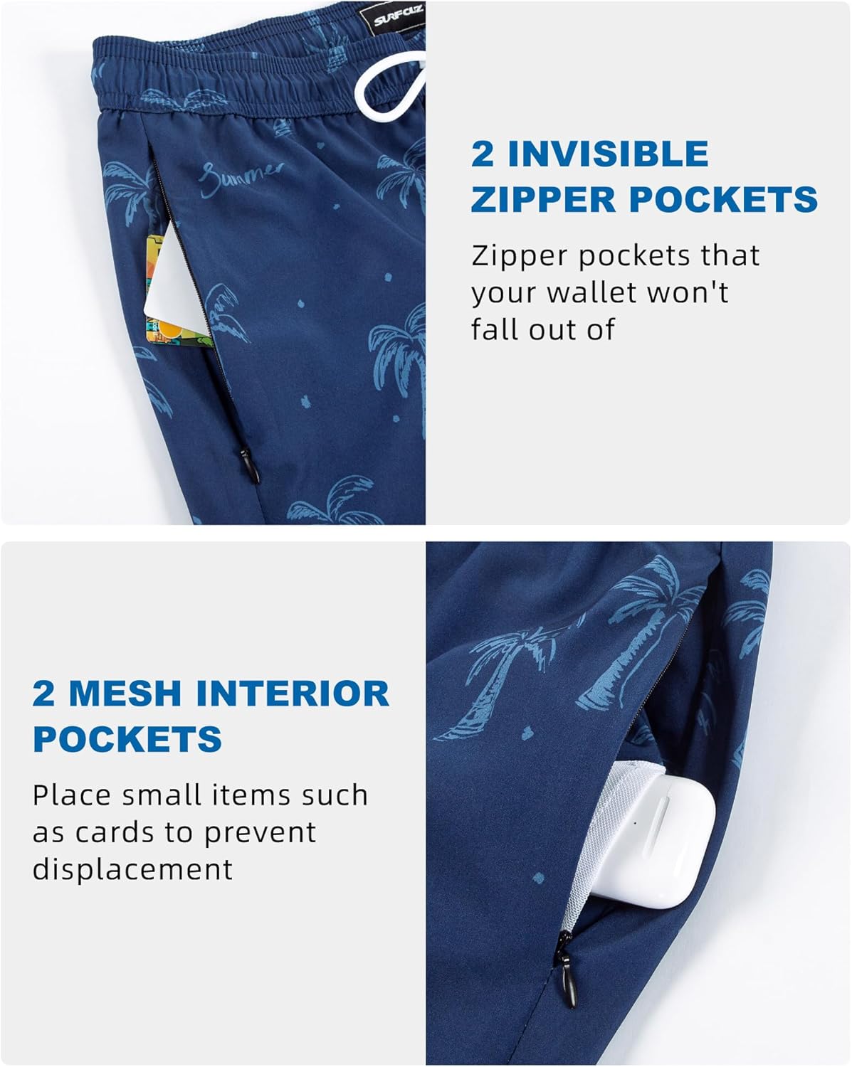 SURF CUZ Mens Swim Trunks with Compression Liner 2 in 1 Swimming Trunks Quick Dry Swim Shorts Bathing Suit Zipper Pockets