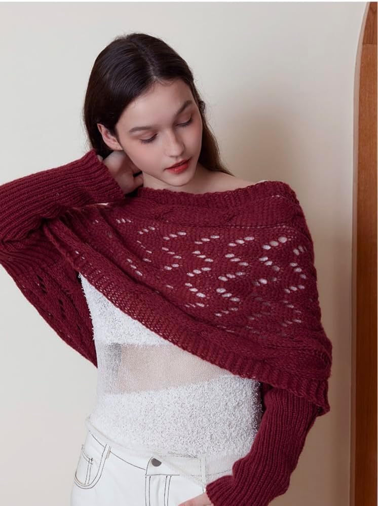 Sweater Scarf with Sleeves for Women Multi-Use Knitted Cable Wrap Shrugs Crochet Fashion Shawl Cape