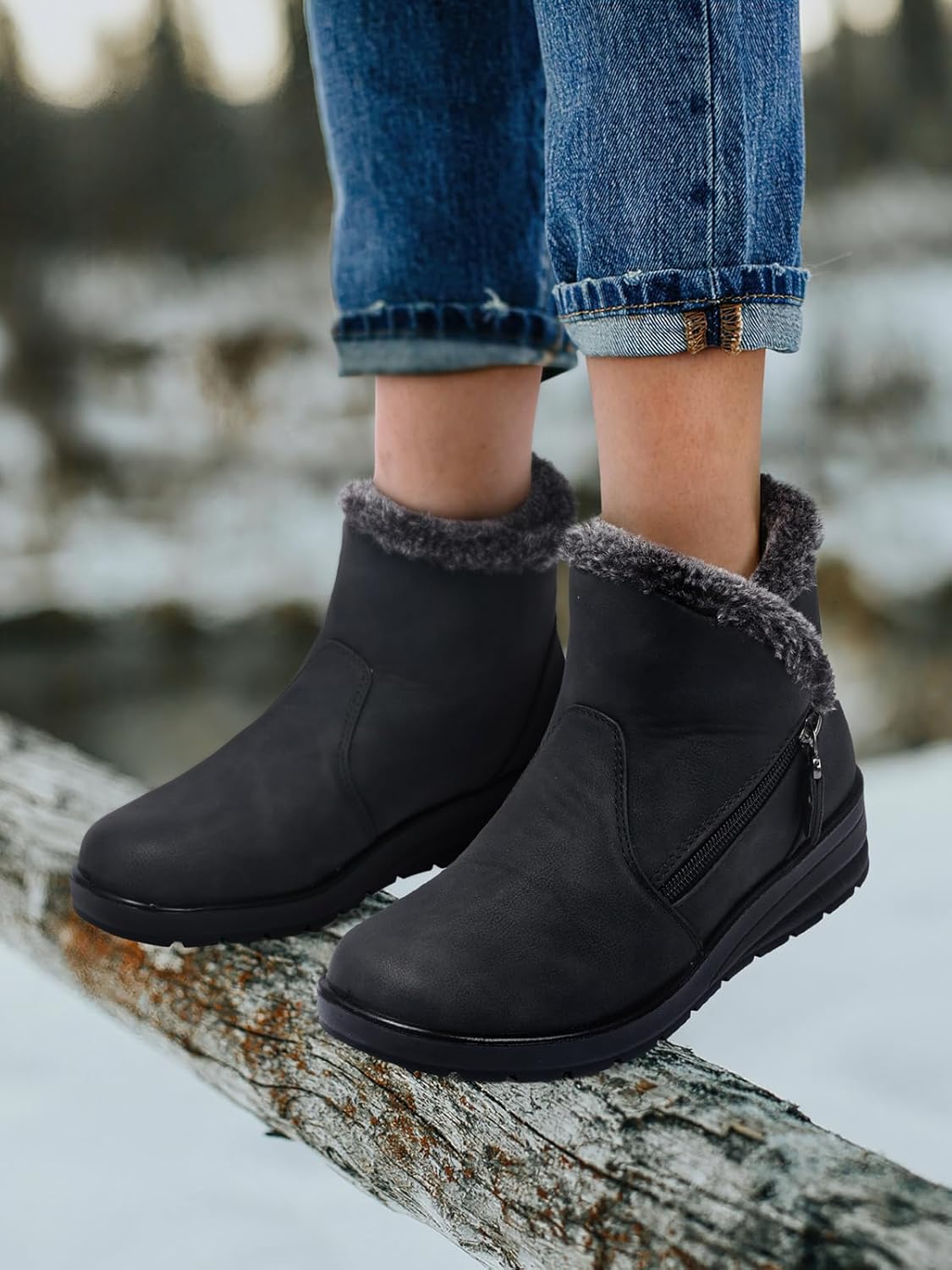 SWQZVT Winter Ankle Boots for Women: Waterproof Snow Boots for Women Black Warm Insulated Comfortable Dressy Booties