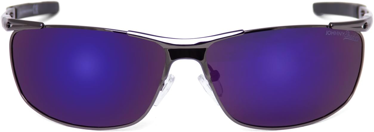The “Lexani” sunglasses feature an edgy wraparound design that is perfect for a luxury look with the function of a close fit sport design with R-Grip rubberized tips. These feature all metal (stainless steel) rigid frames, with ultra quality spring hinges, make these very comfortable on any face shape or size. Our trademarked Johnny Shades logo is laser etched on the front left lens.
