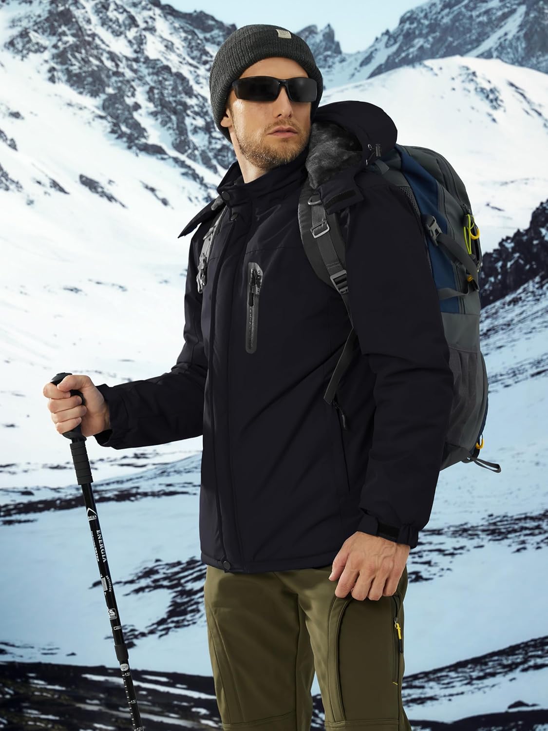 TACVASEN Men’s Ski Snowboard Jacket Warm Winter Windproof Hiking Fishing Travel Fleece Lined Jacket Hooded with Pockets