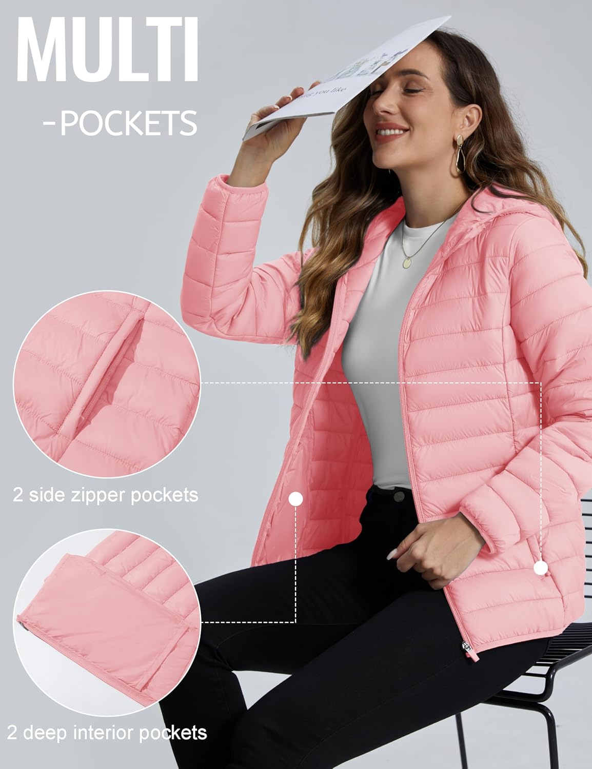 TACVASEN Women’s Lightweight Puffer Jacket with Hood Pockets Quilted Padded Full-zip Winter Coat