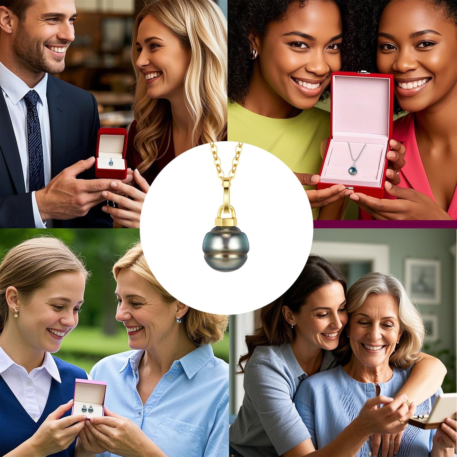 Tahitian Black Pearl Necklace, 9-10mm Baroque AAA Handpicked Natural Black Pearl Pendant with 18K Yellow Gold Plated Sterling Silver Chain, Luxury Gifts for Women, Mother, Girlfriend, Anniversary, Birthday, Valentines, Mothers Day