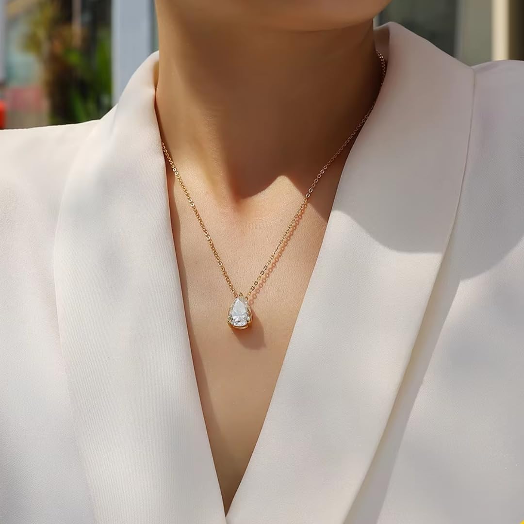 Teardrop Pendant Necklace – 2.5 Carat Moissanite Necklace | 18K Gold Plated S925 Silver Necklace for Women
